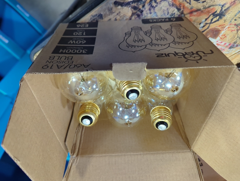 It comes with 6 pack 60W 110V 230LM Edison bulbs, each one packed in an individual box, make sure the bulbs are well protected during transit, Need no worry about receiving broken/damaged light bulb. If bulbs are damaged or broken during transit, we' ll make timely compensation