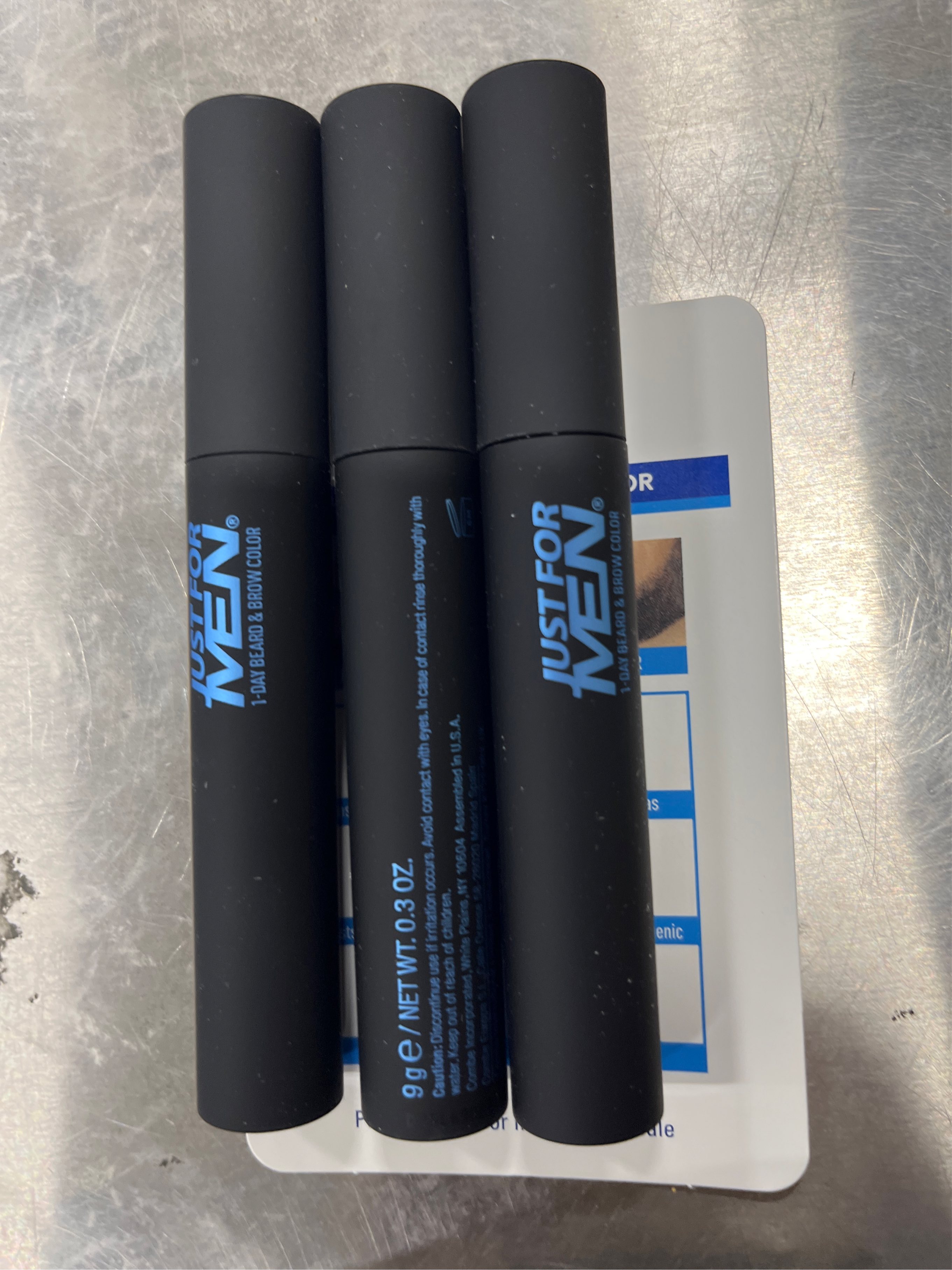 Just for Men 1-Day Beard & Brow Color, is a brush-in/wash-out dye-free color to temporarily cover grays and fill in thin, patchy areas for a thicker, well-defined look