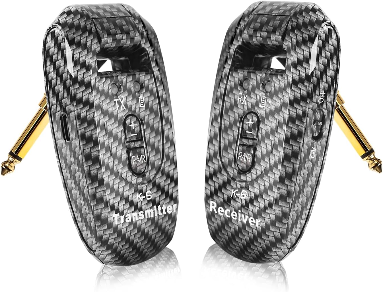 K6 Wireless Guitar Transmitter Receiver System 2.4GHz 250°Rotatable, 1/4" & 1/8" jack, Volume Adjust, 100FT, 5Hrs, for Acoustic Guitar Bass Violin Keyboard Electric Instruments, Carbon