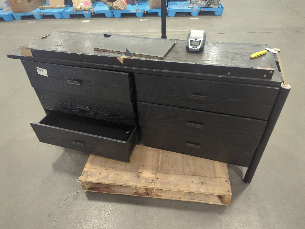 Damaged back ,Damaged top ripped off damaged wood piece inside at back and Scuff marks Kaplan Size 66'' W 6 Color Black - Drawer Dresser