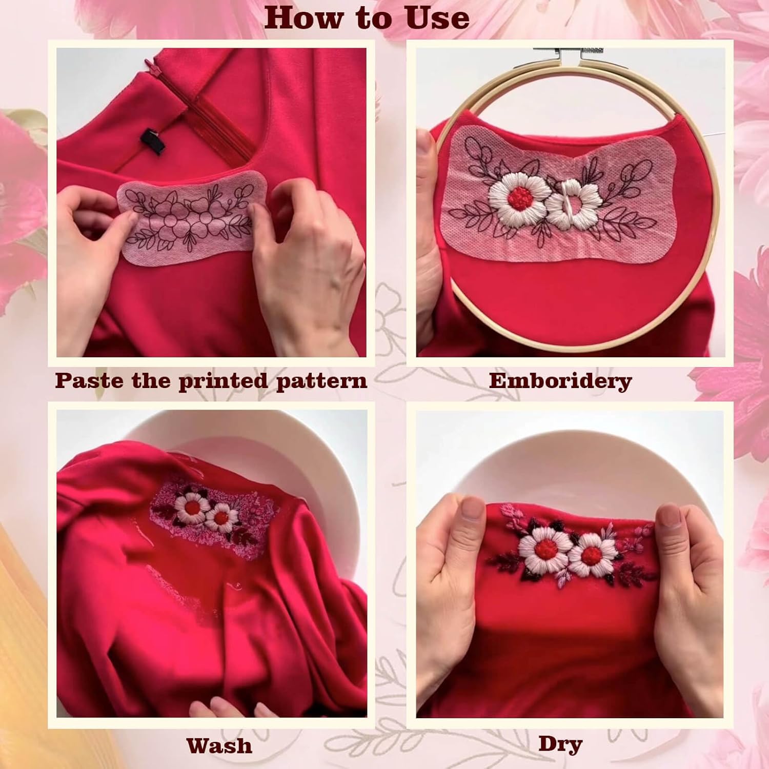 MULTI FUNCTIONS: With the wash away stabilizer, you can decorate your hats, scarves, shirts, coats, pants, jeans, dress, skirts, bags, towels with your own idea, and for repairing your clothes and broken holes, creating a charming and attractive design. Also it is a good idea for your unique DIY gift for your lover