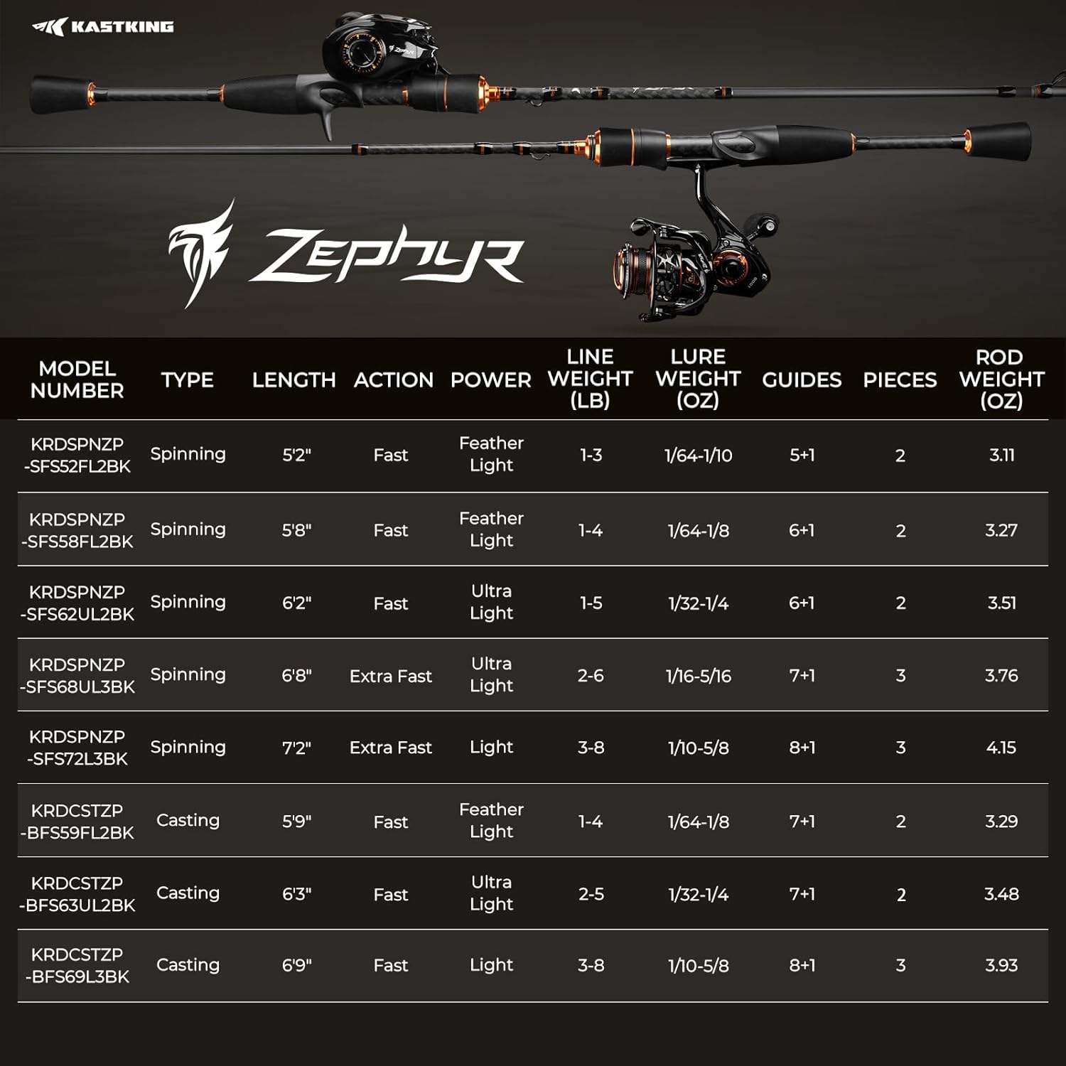 KastKing Zephyr Spin and Bait Finesse Fishing Rod, Lightweight Casting & Spinning Rods, IM6 Graphite Blanks, Cast Lure Down to 1/64oz, Zirconia Ring, Split Reel Seat, EVA Handle, Alignment Marker