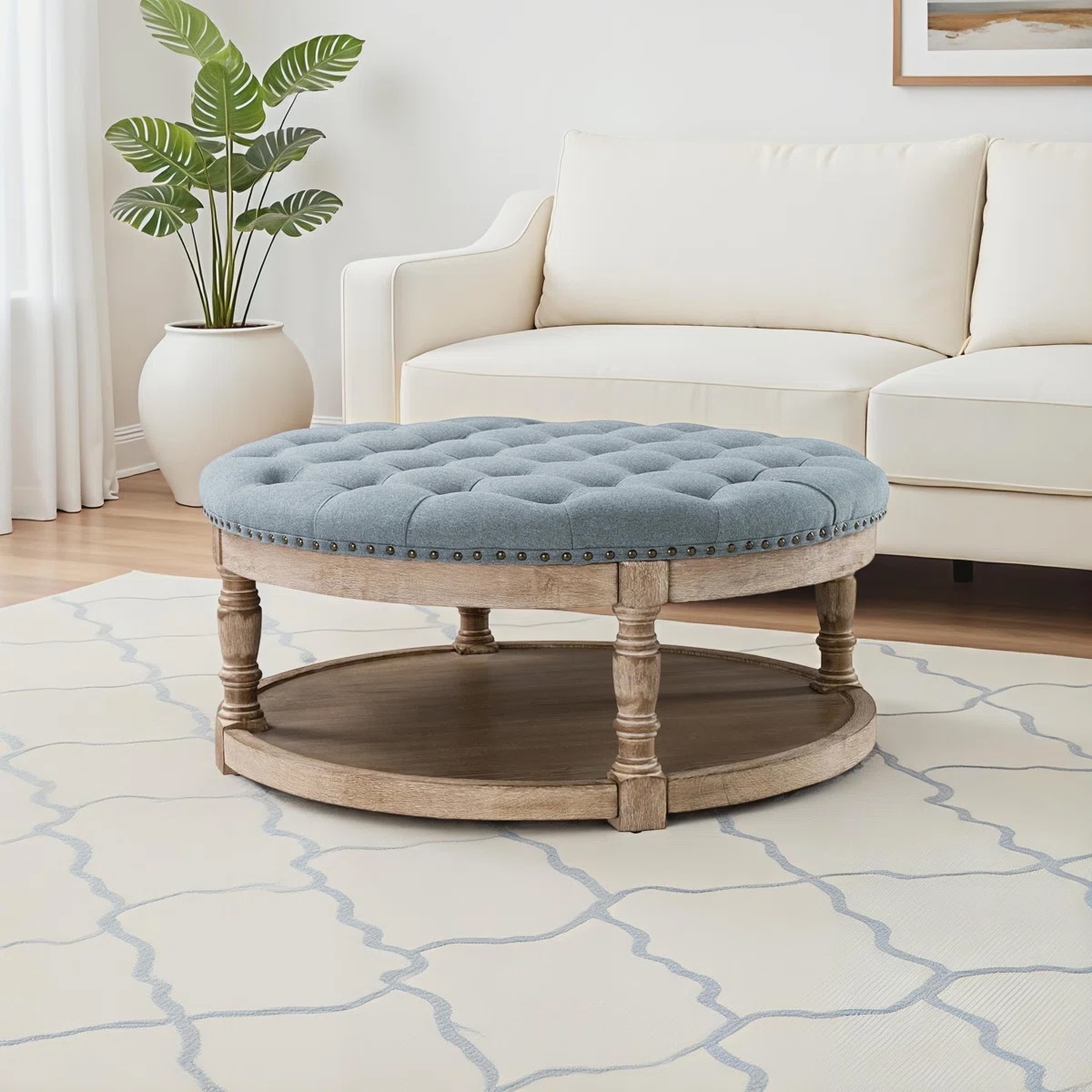Kat 35"W Farmhouse Upholstered Storage Button-Tufted Ottoman