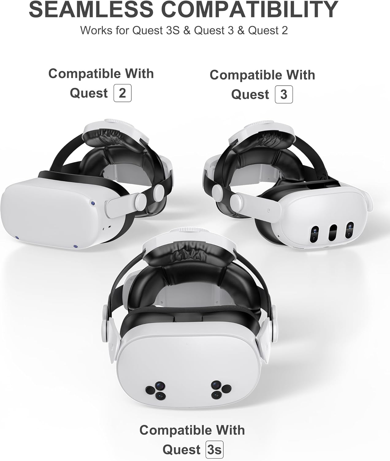 【Universal Fit for Meta Quest 3S/3/2 】Kawaye head strap compatible with Meta Quest 3/Quest 3S/Oculus Quest 2 vr headset, enjoy the same adjustable comfort across all. We Included:1× Comfort Head Strap | 1× for Quest 3S/3 Fasteners | 1× for Quest 2 Fasteners | 1× Cleaning Cloth | 24/7 Support.