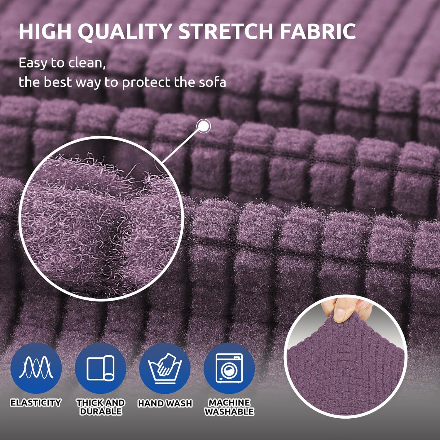 KEKUOU Stretch Sofa Cover Slipcover ,Couch Covers for 3 Cushion Couch Sofa pet Friendly (78"-94") Furniture Protector Sofa with Elastic Bottom for Kids,Dog, Jacquard Small Checked(Large,Dark Purple)