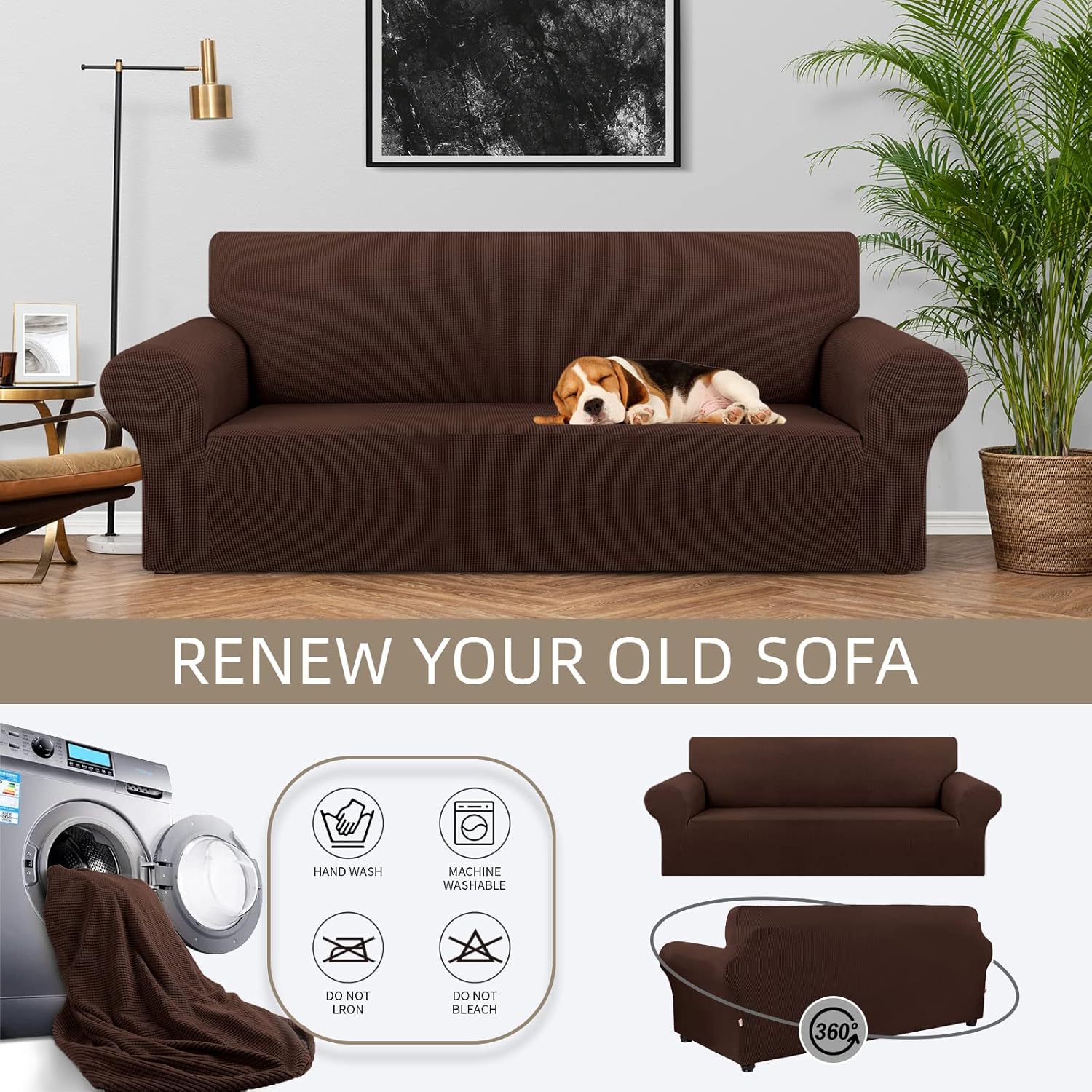 KEKUOU Stretch Sofa Cover Slipcover ,Couch Covers for 3 Cushion Couch Sofa pet Friendly (79"-94") Furniture Protector Sofa with Elastic Bottom for Kids,Dog, Jacquard Small Checked(Large,Chocolate)