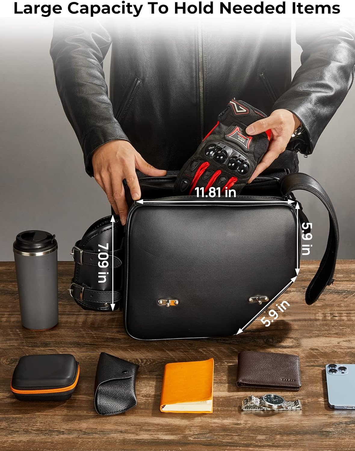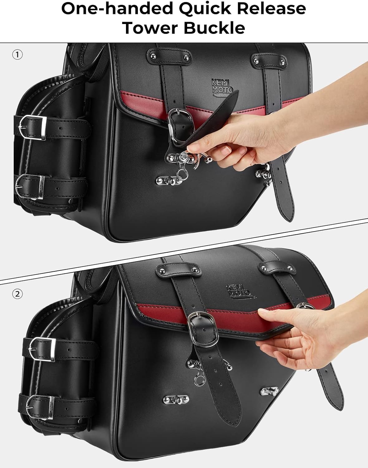 18L Large Capacity:The motorcycle saddle bag offers ample storage space for all your essential items, including cups, drinks, gloves, jackets, wallets, headphones, power banks, raincoats, groceries, tools, and more. Kemimoto saddle bags are more convenient and easy to locate on your motorcycle. They are the ideal choice for your daily commutes and short getaways. Note: Please make sure the clearance between the saddlebags and the tailpipe is at least 3 inches