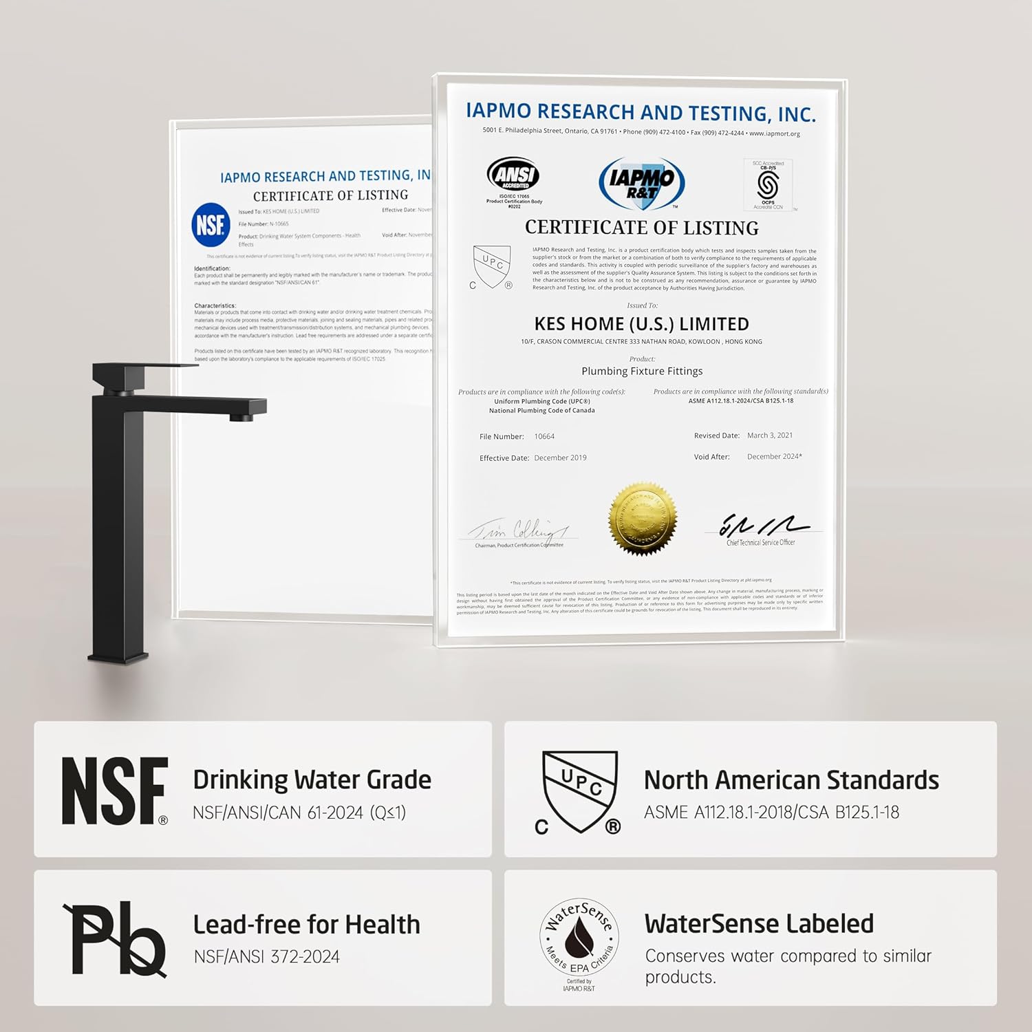 [ Lead Free NSF Certified ] KES tall bathroom faucet is NSF and cUPC certified, compliant with no-lead requirements and California (CEC) Standards.