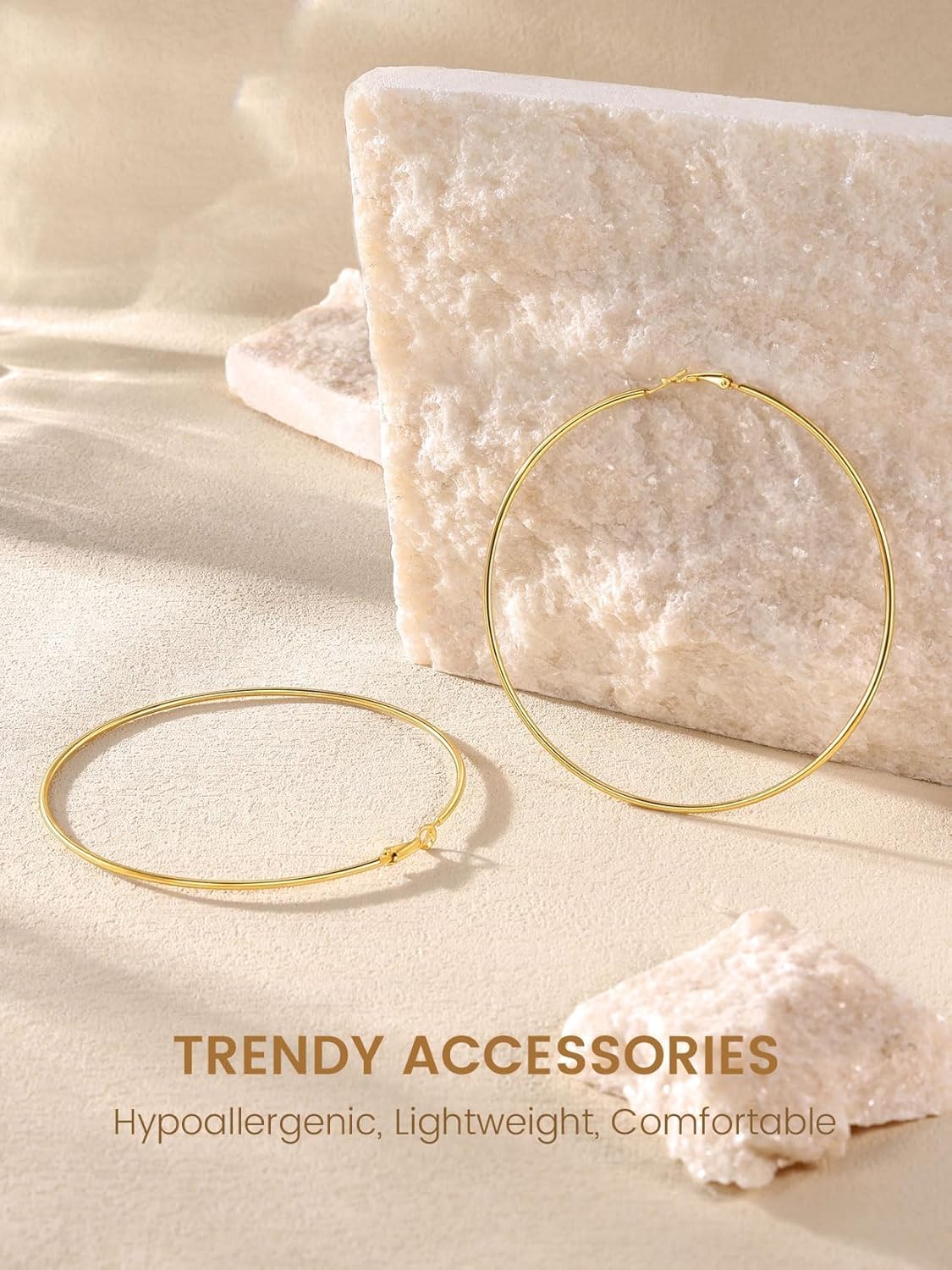 Lightweight Thin Hoop Earrings for Women: Indulge in all-day comfort with our lightweight ear hoops – just 15g per pair. With a 2MM thick tube and 100MM diameter, they offer a bold look without the heavy weight