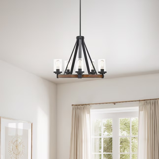 Kichler Barrington 5 -Light Distressed Black Farmhouse For Use in Bedrooms, Dining Rooms, Foyers, Kitchens, Living Rooms Chandelier