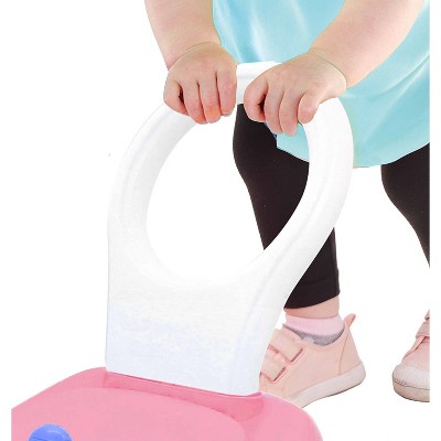 Ride-on plays sounds and has flashing colorful lights! See Princesses rotate to flashing lights for animated action and fun inside magical pumpkin carriage! Dashboard with fun interactive electronic activities. Features colorful piano keys to compose and play music. Safe and durable construction for hours of riding fun.