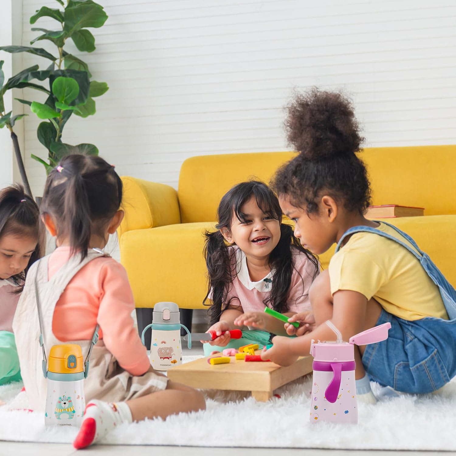 [Multipurpose Kids Water Bottle]: Children's stainless steel thermos cup can be used to hold cold water, juice or hot/cold milk. Our water bottles come in a variety of fun colors, giving kids fun while never forgetting to drink. Notice not to hold carbonated drinks.