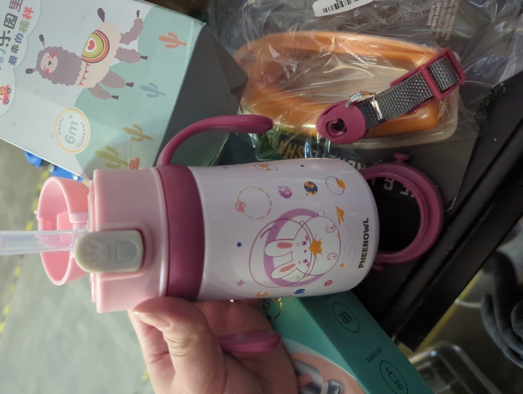 [Detachable Handle]: Stainless steel water bottles handle and strap can be replaced at will. When children are younger, they can use the handle to practice drinking.When the baby goes to kindergarten and outdoor activities, it is more convenient to wear a sling.