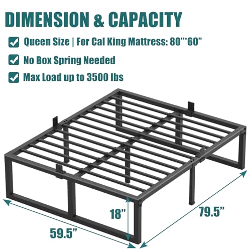 King Bed Frame, 18 Inch High 3500 lbs Metal Platform, Mattress Foundation with Steel Slat Support/No Box Spring Needed/Noise Free/Non-Slip/Easy Assembly