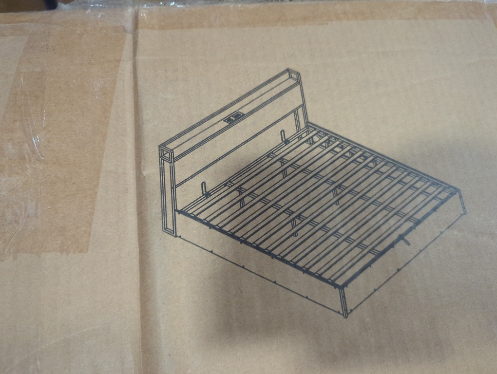 King Bed Frame With Storage Headboard and Charging Station Grey