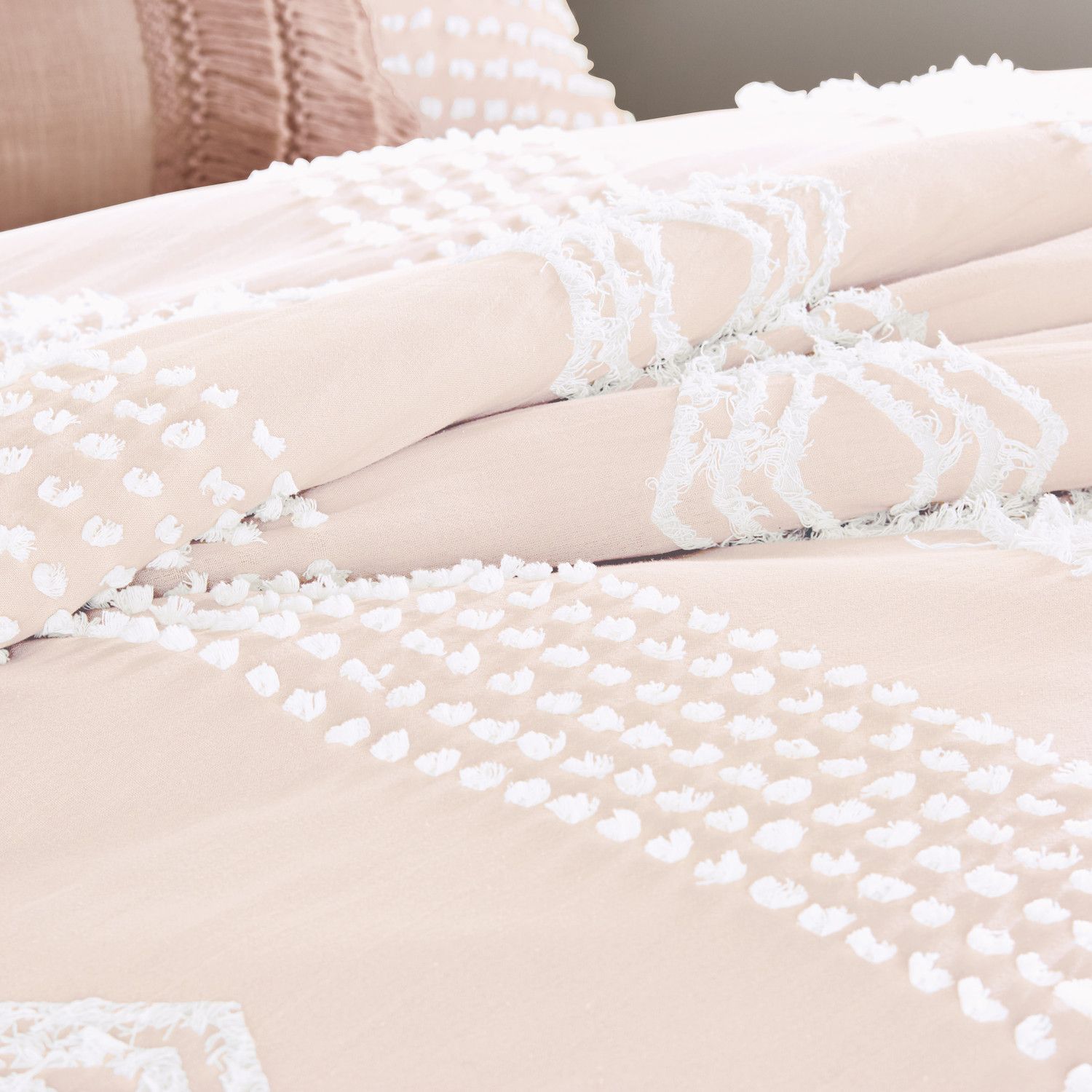 - Tufted geometric jacquard pattern