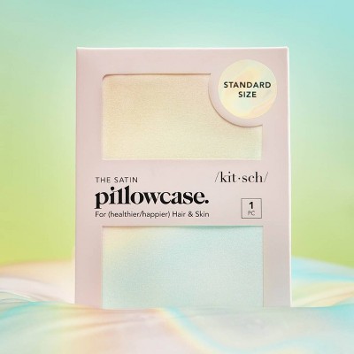 Elevate your nighttime routine with the Kitsch Standard Size Satin Pillowcase in Aura! The silky-soft satin stays cool all night and is extra gentle on your hair and skin. Getting your beauty rest with a satin pillowcase can help tame frizz, reduce breakage, and support a more radiant-looking complexion with fewer breakouts. Better beauty sleep starts here!