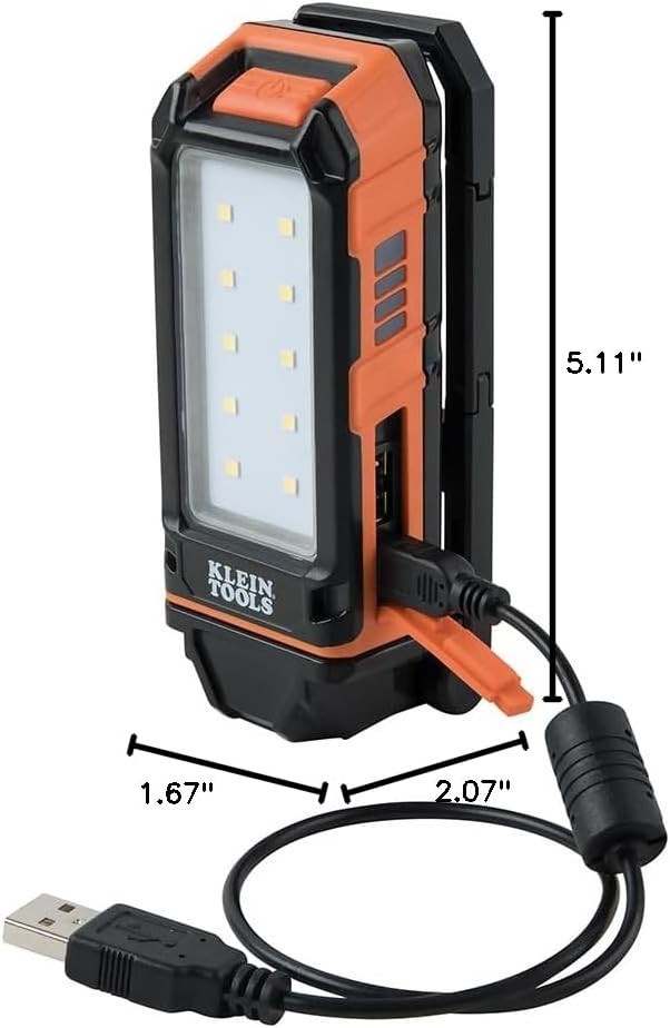 Klein Tools 56403 LED Light, Rechargeable Flashlight / Worklight with Kickstand, Magnetic Mount, and Carabiner, Charges Small Electronics, for Work, Camping