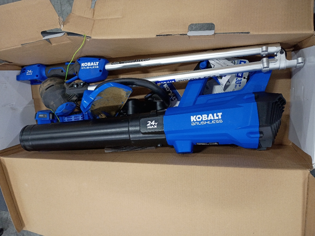 The Kobalt 24-Volt Max Leaf Blower and String Trimmer Combo Kit helps keep your yard neat and tidy. The String Trimmer's 12 inch cutting swath and dual line feed increase cutting efficiency, while it's bump head makes it easy to advance line for continuous use. The Leaf Blower's turbine fan produces 410 CFM to quickly corral fallen and debris so you don't have to rake, and it's removable tube makes storage convenient. The interchangeable 24-Volt battery offers lasting power and run time, and high efficiency brushless motors offer durability to easily tackle outdoor chores. Variable speed triggers on both tools allow you to set the power to suit the task for maximum control. Yard work just got easier with the Kobalt Leaf Blower and String Trimmer Combo Kit.