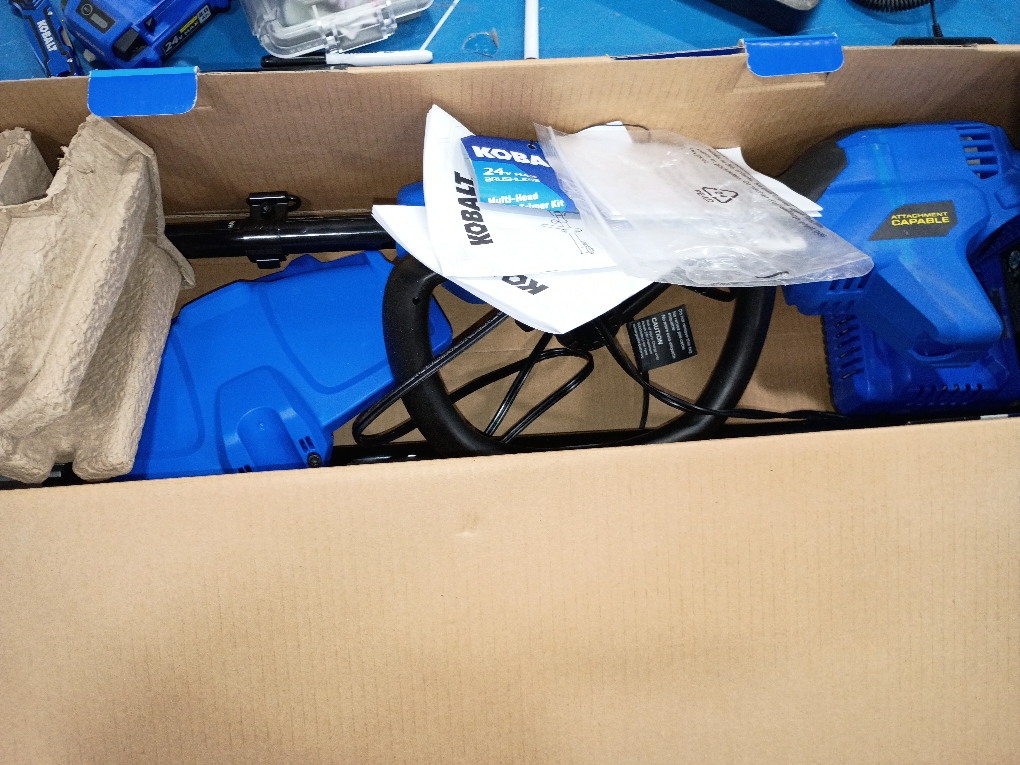 The Kobalt 24-Volt Max Multi-head String Trimmer Kit makes yard work a breeze. The string trimmer's 15 inch cutting swath and dual line bump head makes it easy to advance line for continuous use. Variable-speed trigger allows you to set the power to suit the task for maximum control. Part of the 24V Max Multi-head family of 75 products.