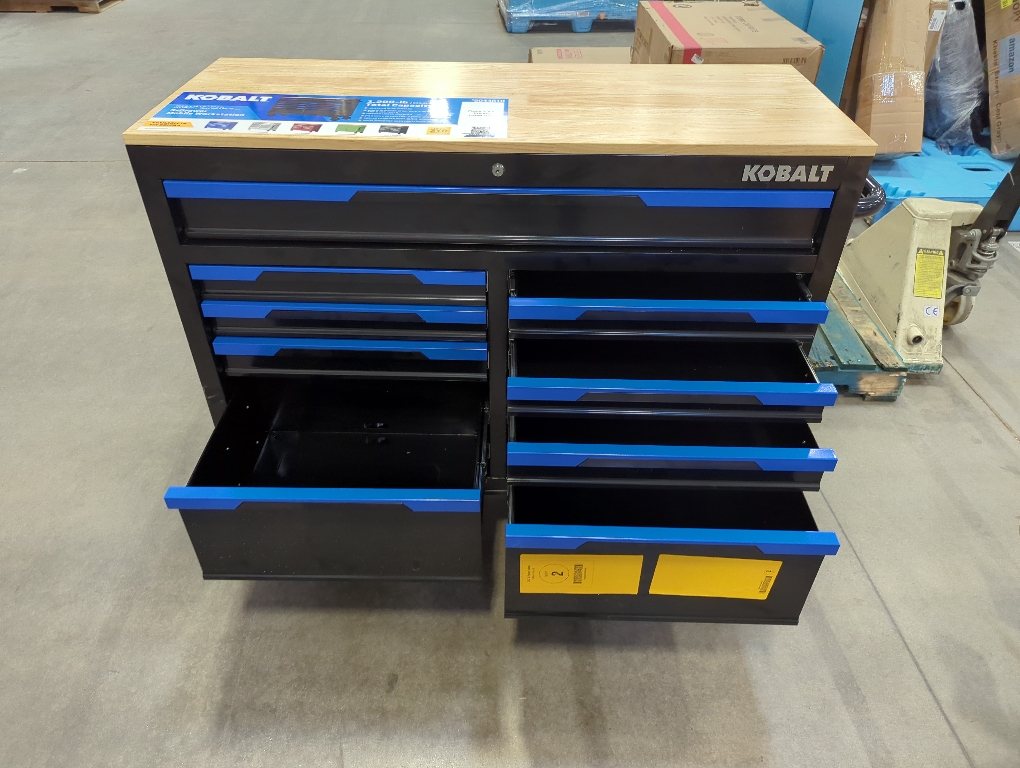 Kobalt 46.1-in L x 37.2-in H 9 -Drawers Rolling Black Wood Work Bench