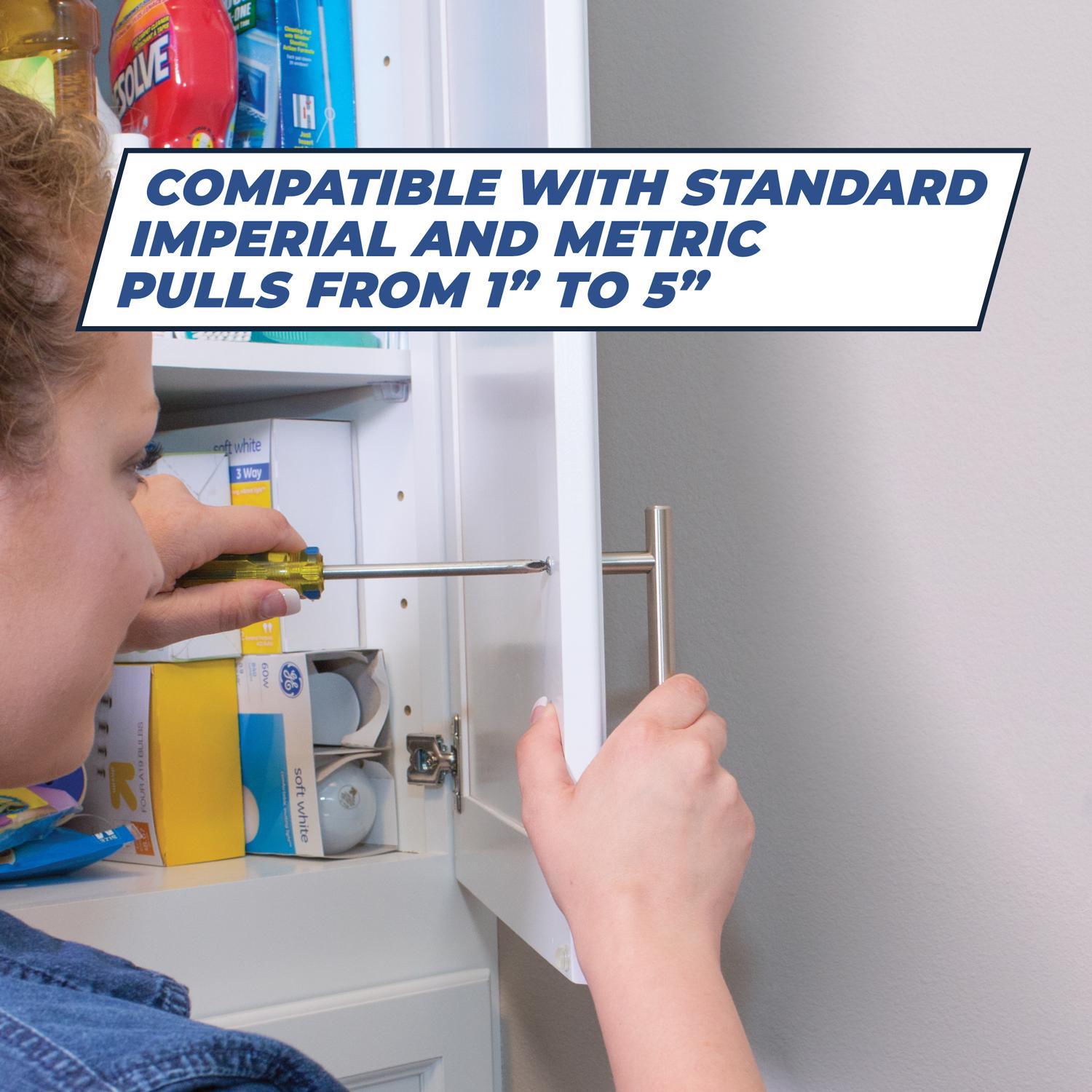 The Kreg Cabinet Hardware Jig takes the guesswork out of installing cabinet knobs and pulls. The moveable edge guide and measuring scales make it easy to position knobs precisely, while adjustable drill guides ensure straight holes for perfect knob and pull positioning every time. Perfect for new construction and for refreshing entire rooms.