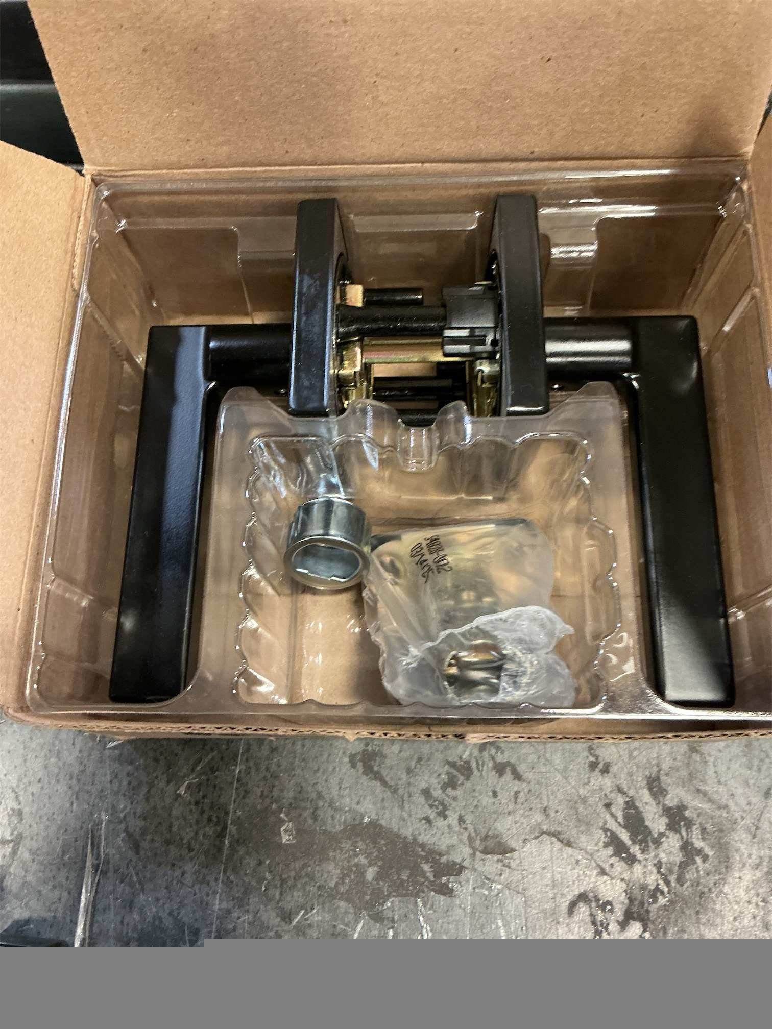 BOX INCLUDES: Passage lever, adjustable latch with round and square front options or drive-in collar, round corner strike, rosette, screws and Allen wrench