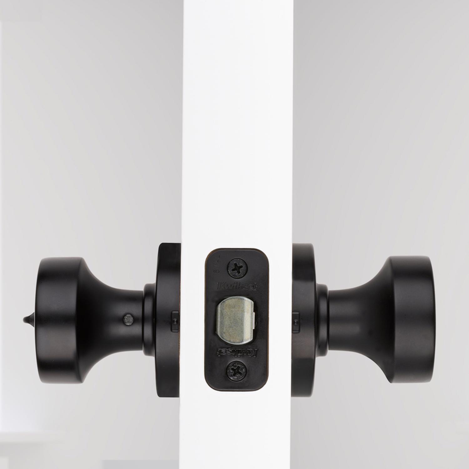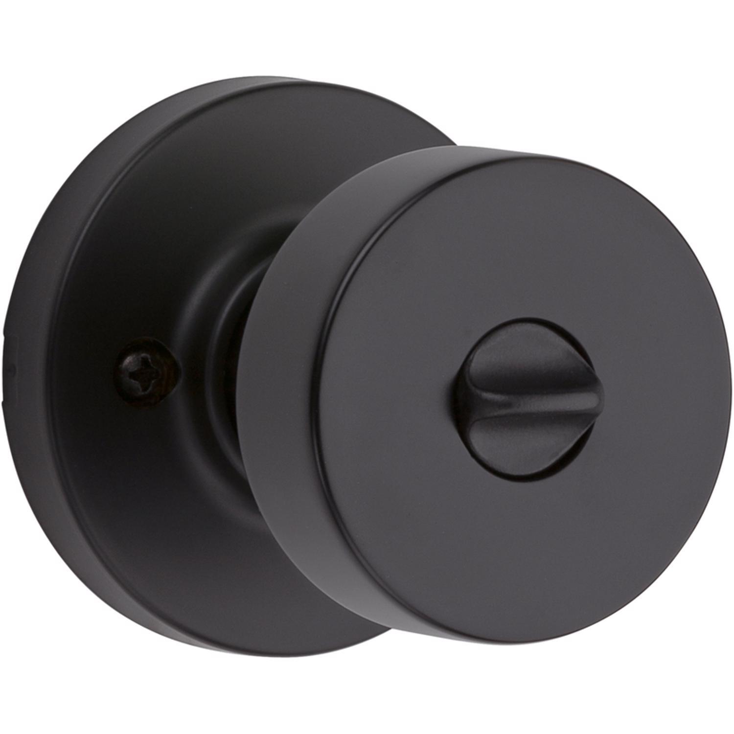 Step up to designer styles and superior security with Kwikset Signature Series products. Pismo has an idealistic, simplified look. With defined lines and a variety of finishes, you can seamlessly upgrade to a contemporary style. Pismo can features a round rose. This privacy knob is best used in interior bedroom and bathroom applications where privacy is required. Both knobs are operated by the thumb turn on the inside. The outside knob/lever is unlocked by an emergency key. The rich tones of Matte Black add the finishing touch to this product. The Matte Black finish provides a rich and warm complement to the products style.