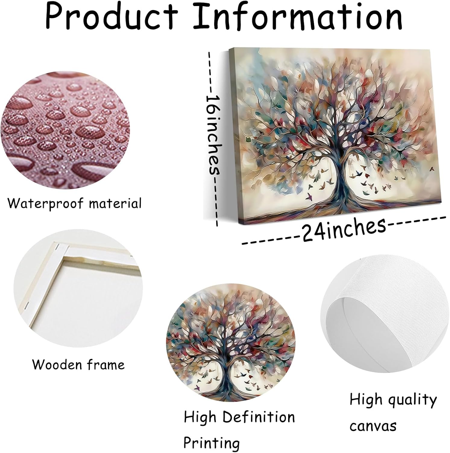 Kyiyhzp Tree of Life Canvas Wall Art plant abstract painting print artwork Modern Ready-to-Hang Decor for Living Room, Bedroom, Dining Room or Home Office, Nature Style Home Wall Decor Large