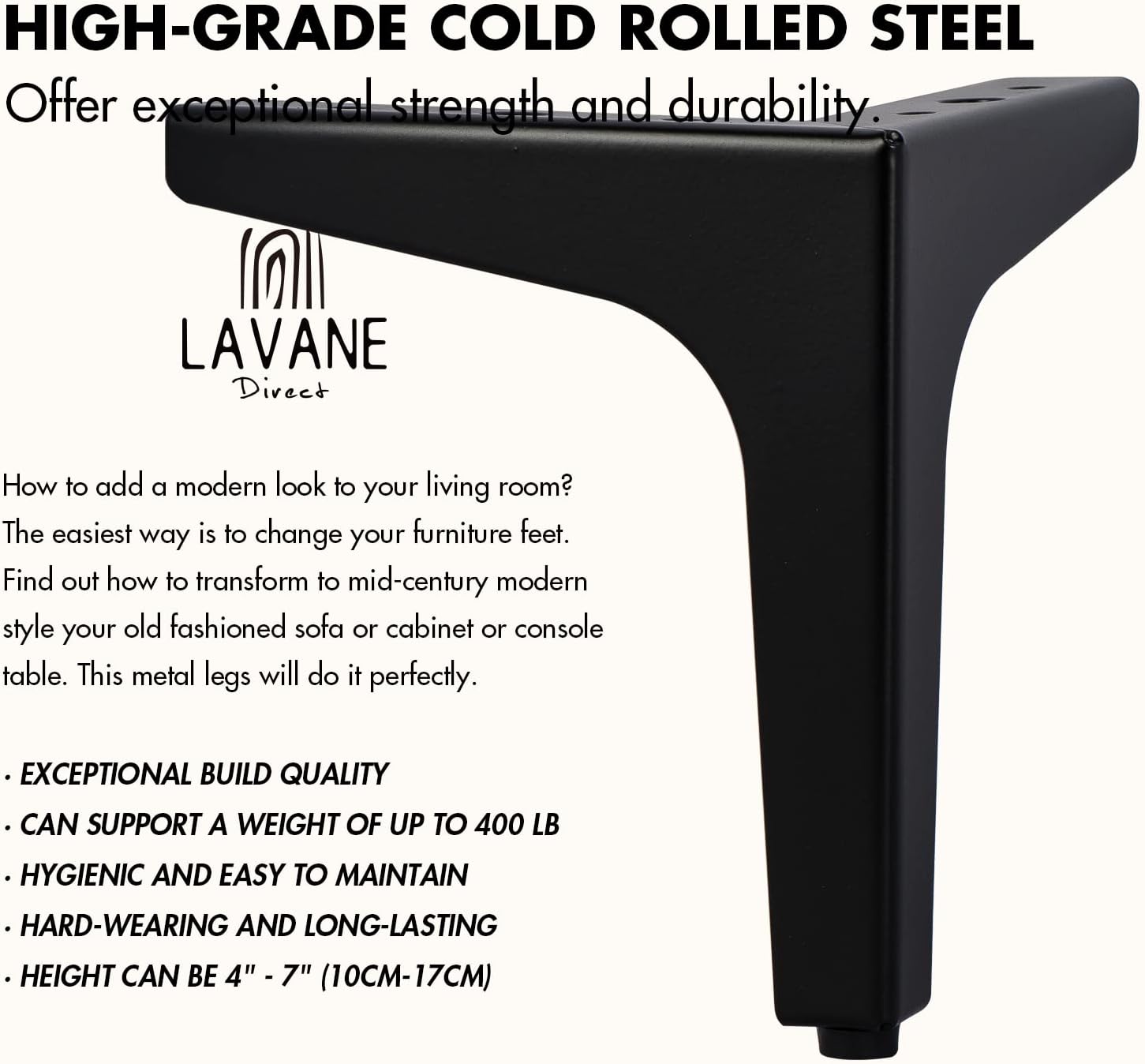 3. La Vane 7 Inch Metal Furniture Legs, Set of 4 - Modern Diamond Triangle Black DIY Replacement Feet for Cabinet, Sofa, Table, Ottoman Makeover