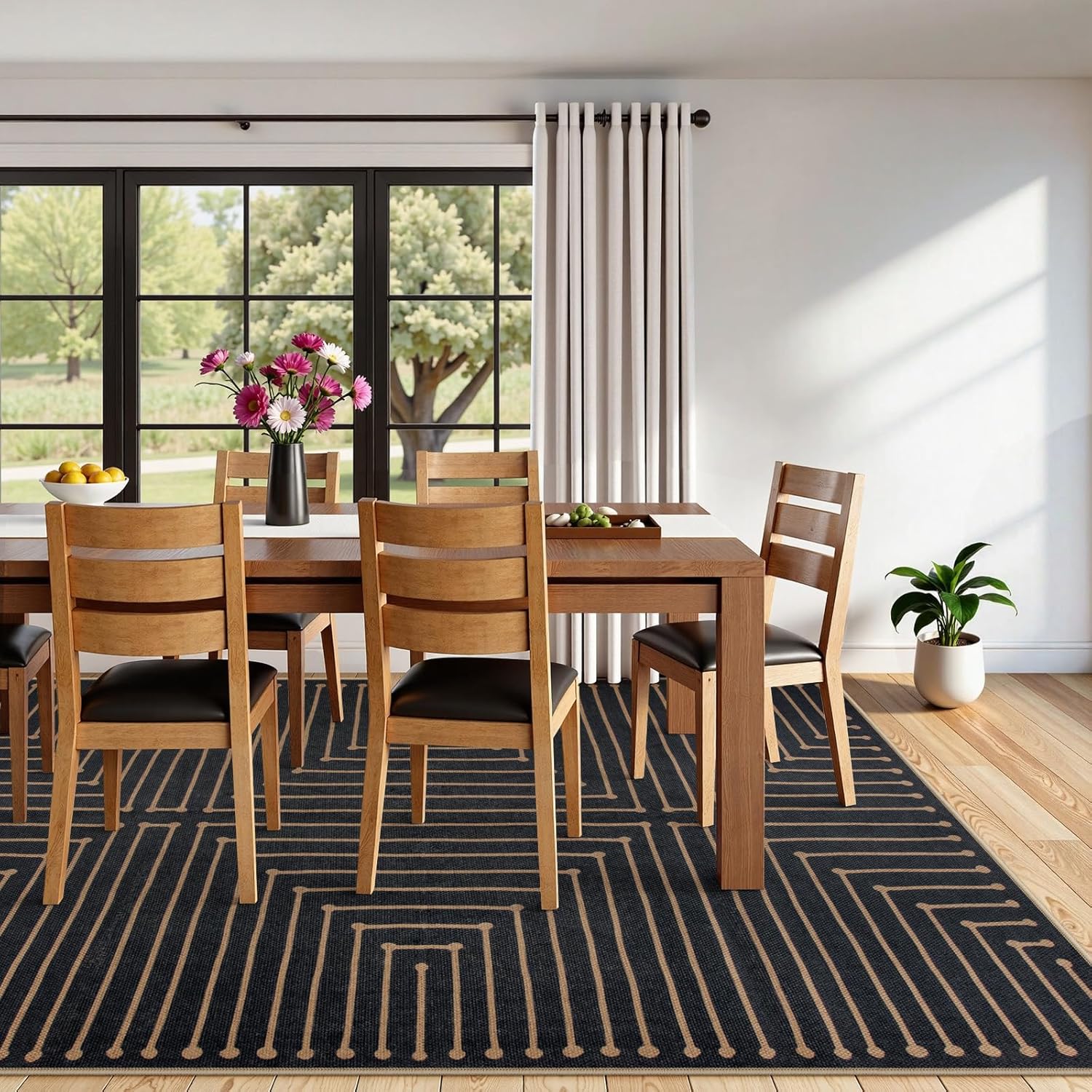 Note: Printed color and pattern in the surface of easy jute(No reversal of use), color is charcoal black/dark blue, not pure black. Our rug comes in a small package, which may be some creases at the beginning. Unroll it or place heavy books on them for a few days to hold down