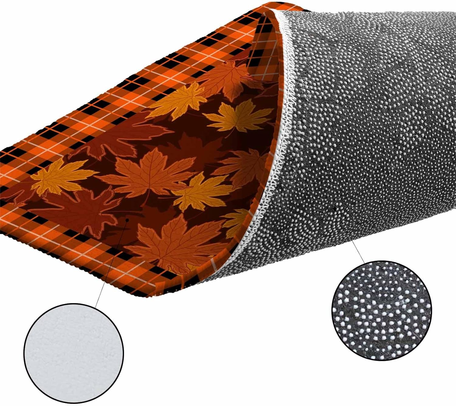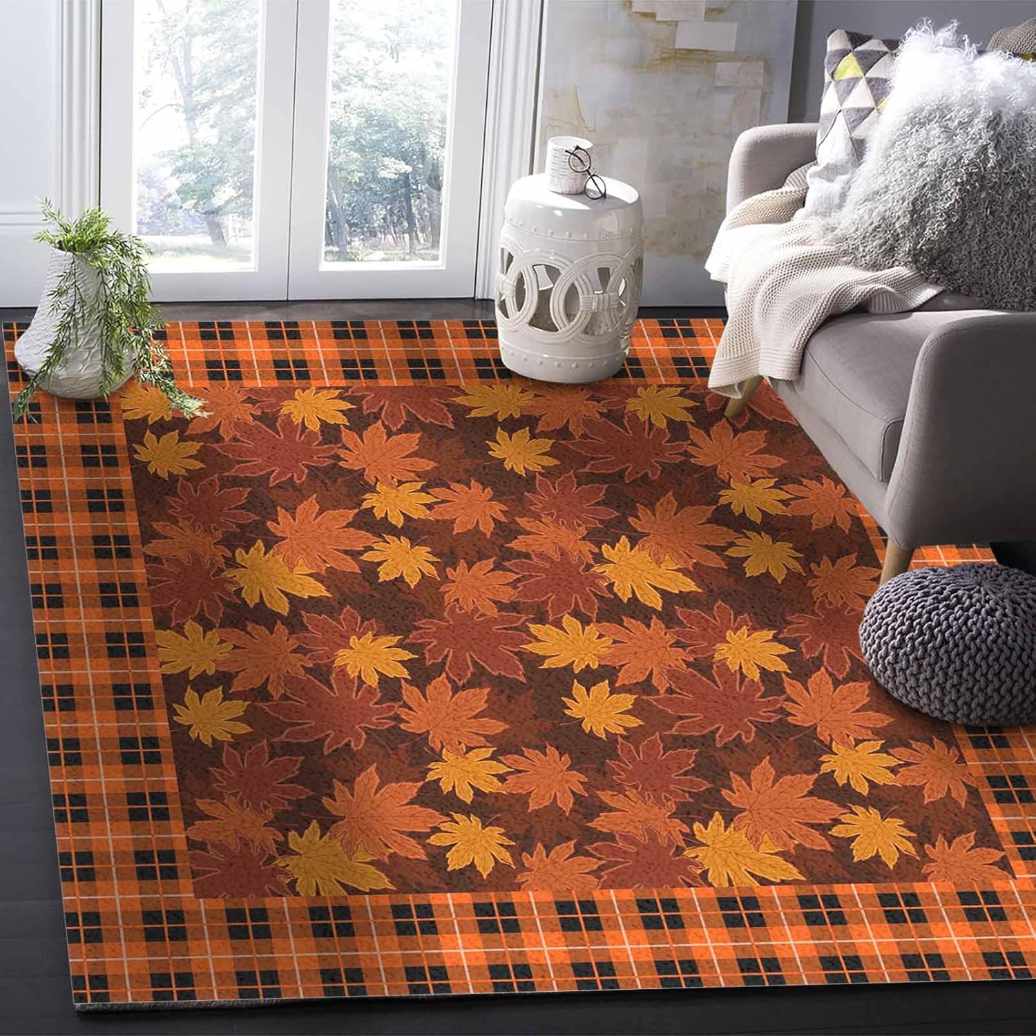 Large Rectangular Area Rugs 4' x 6' Living Room, Thanksgiving Maple Autumn Leaf Durable Non Slip Rug Carpet Floor Mat for Bedroom Bedside Outdoor Fall Orange Buffalo Plaid