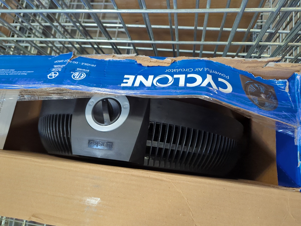 The Lasko 20" Cyclone Power Air Circulator fan is a great choice for an all-purpose floor fan. This electric fan is a great addition to boost your air conditioning circulation, exhaust stale air, or simply provide a refreshing breeze. The 3 quiet high-performance speeds, aerodynamic fan blades, and a special swirling grill design combine for high power and performance. The adjustable fan-head rotates up to 90 degrees and then locks into place, so you can direct the air flow precisely where you need it. It's simple to operate with top-mounted manual controls and easily converts from floor to wall-mount use.