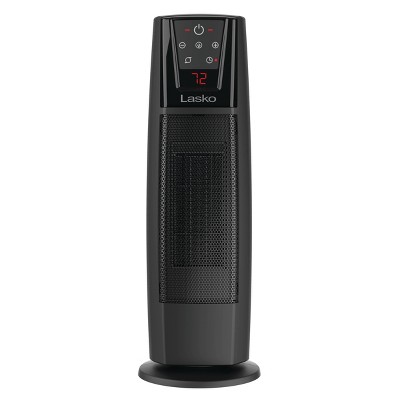 The versatile mid-size Digital Ceramic Tower Space Heater from Lasko is perfect for the bedroom, home office or any room in your home. The front-facing electronic controls are always within reach and the large digital display is easy to read. This ceramic space heater features 2 speeds, an 8-hour timer that can be set in 30-minute increments, widespread oscillation, and an adjustable thermostat. The multi-function remote control will operate the heater functions from a distance. Plus, there is storage for the remote control on the back of the heater. This electric heater is easily portable with the built-in carry handle. Safety features include automatic overheat protection and a cool-touch exterior for peace of mind. Requires simple, no-tools assembly.