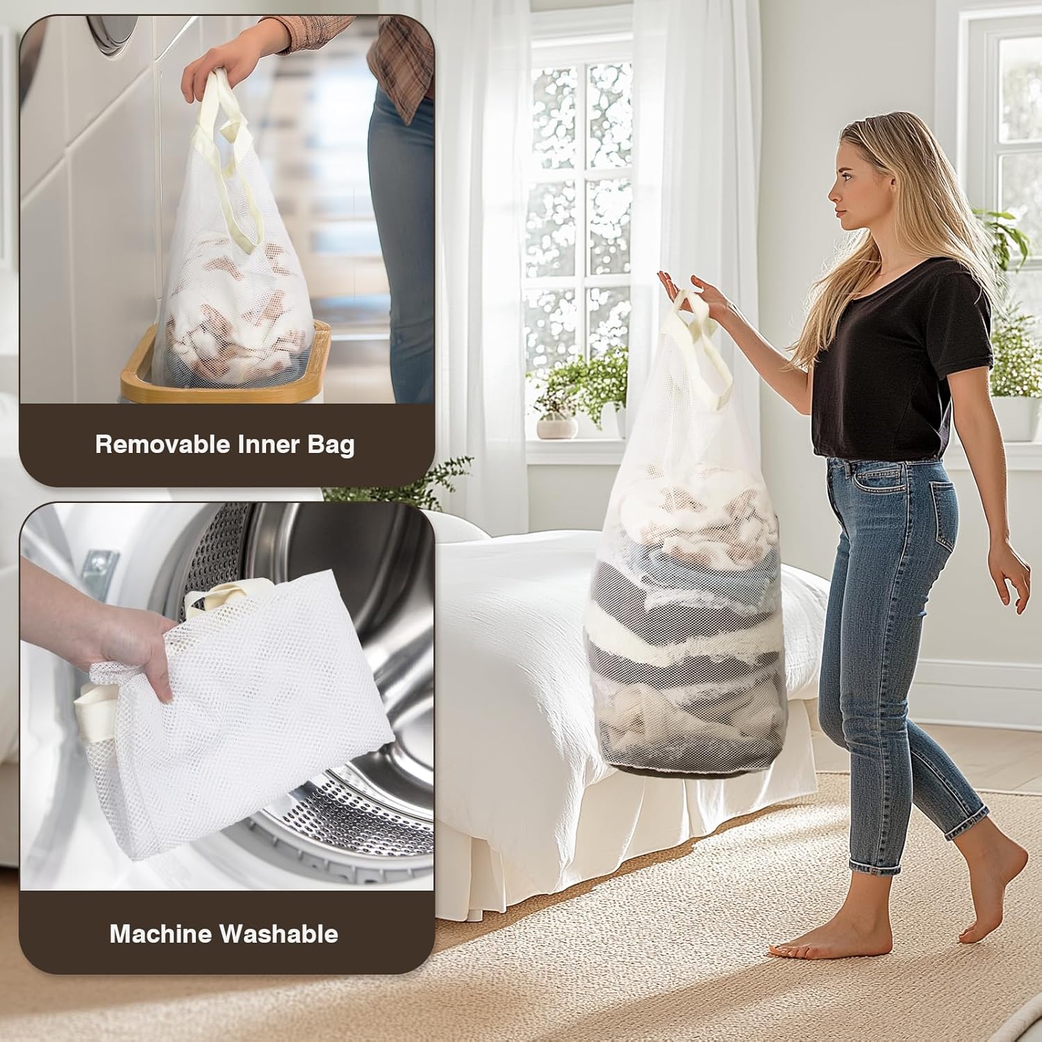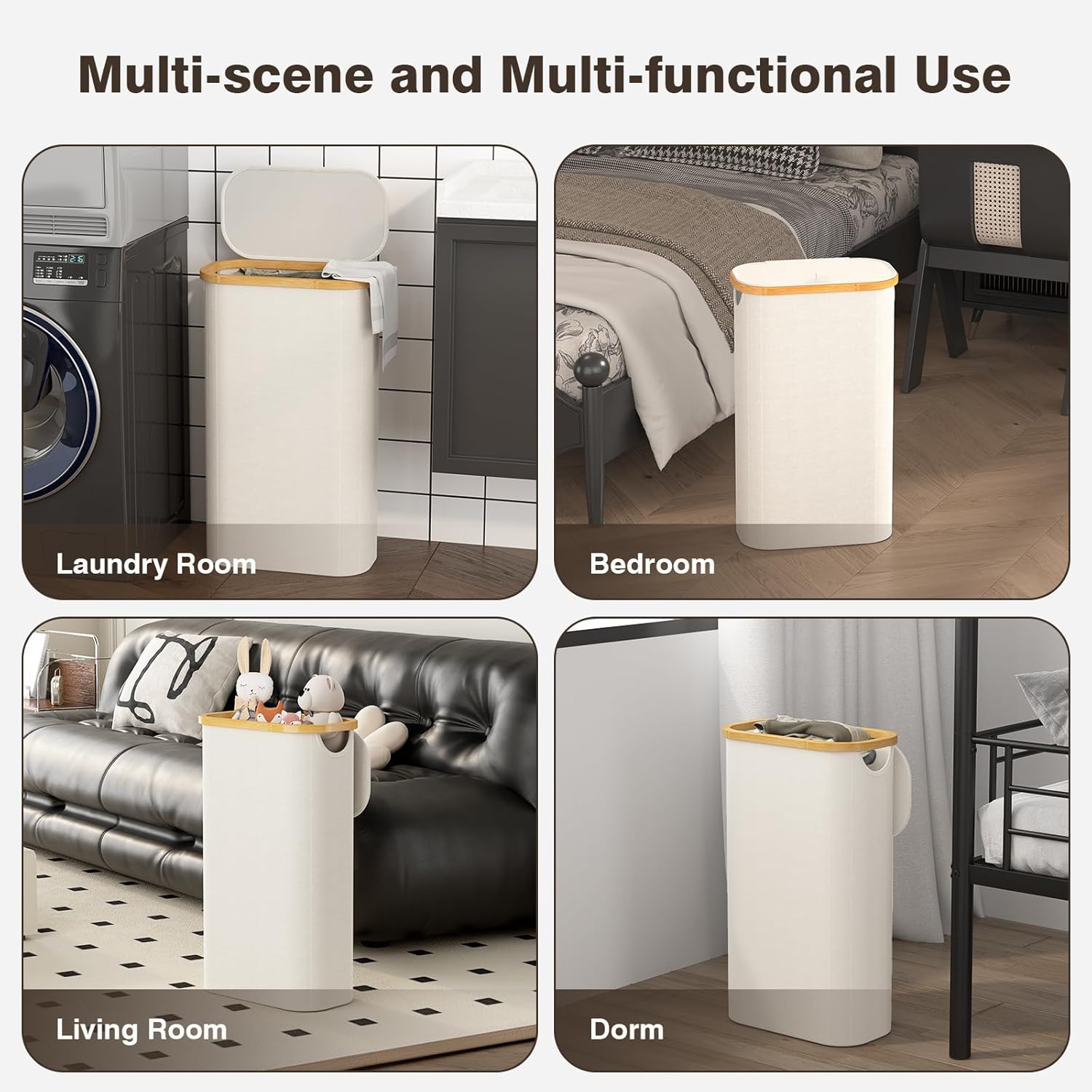 Laundry Hamper with Lid, Dirty Clothes Hampers for Laundry, Collapsible Laundry Baskets for Small Spaces, Bedroom, Bathroom, Laundry Room, Beige