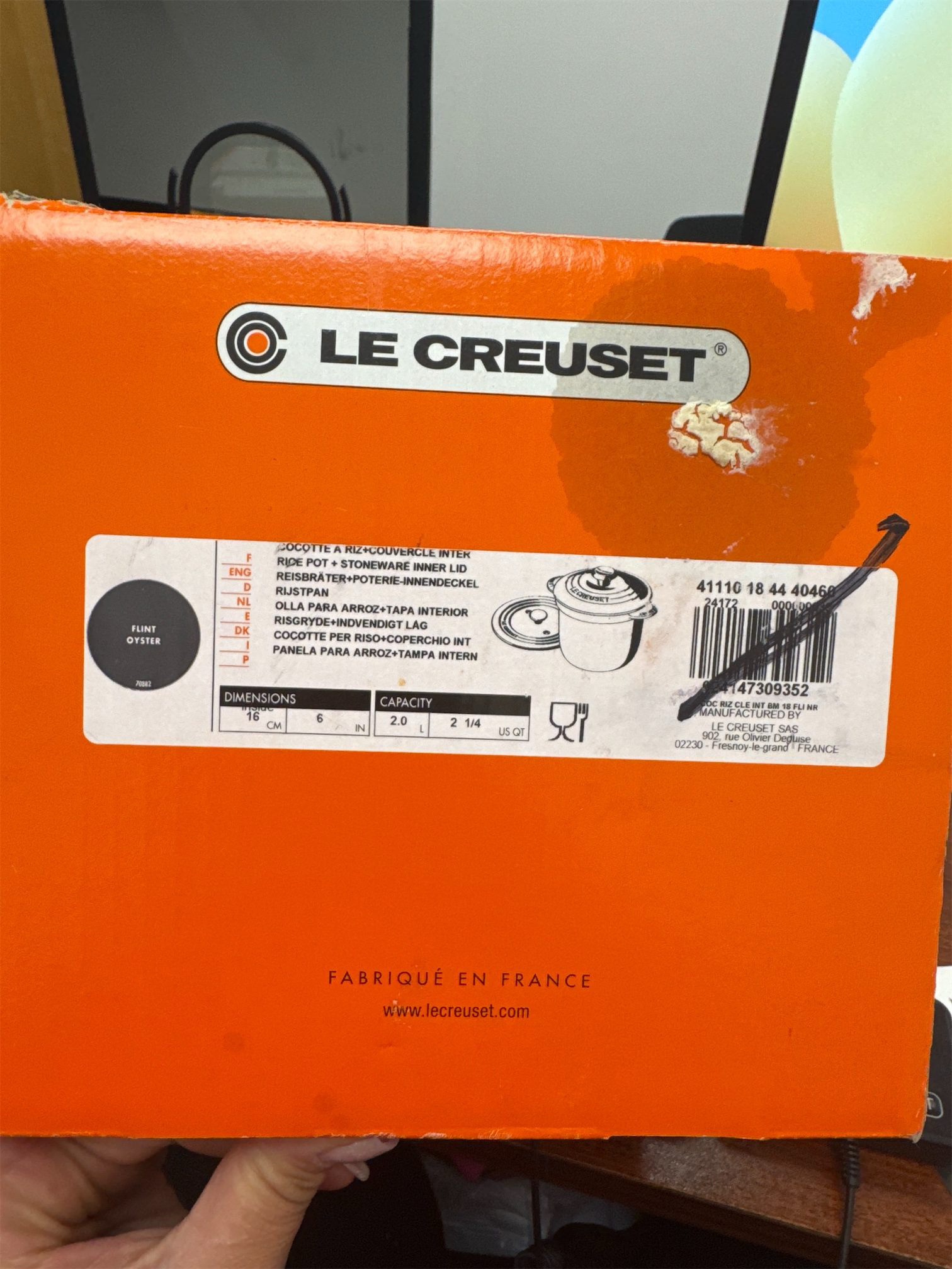 Le Creuset Enameled Cast Iron Rice Pot with Lid & Stoneware Insert, 2.25 qt., Oyster
