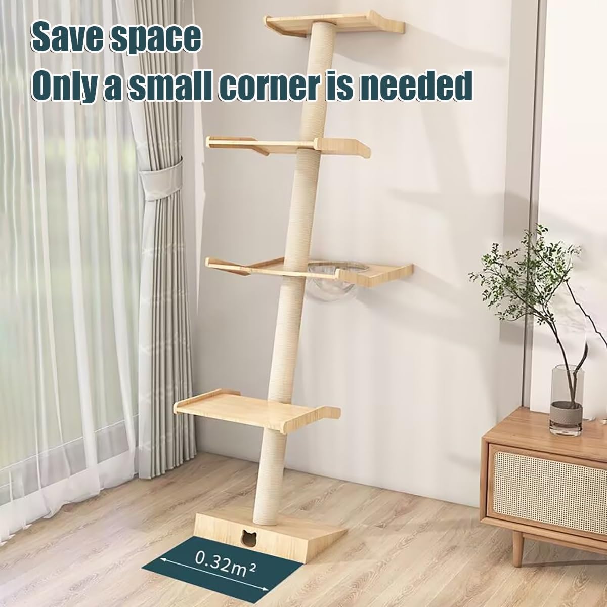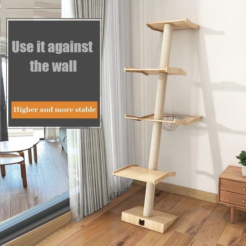 Multifunctional Cat Activity Tree: This cat wall furniture combines a cat space capsule, cat climbing tree, cat scratching post, cat wall stand and cat bridge in one, suitable for all kinds of cats' preferences. This tall multi-layer cat tower helps maintain a quiet multi-cat environment and create an all-round small space cat paradise.
