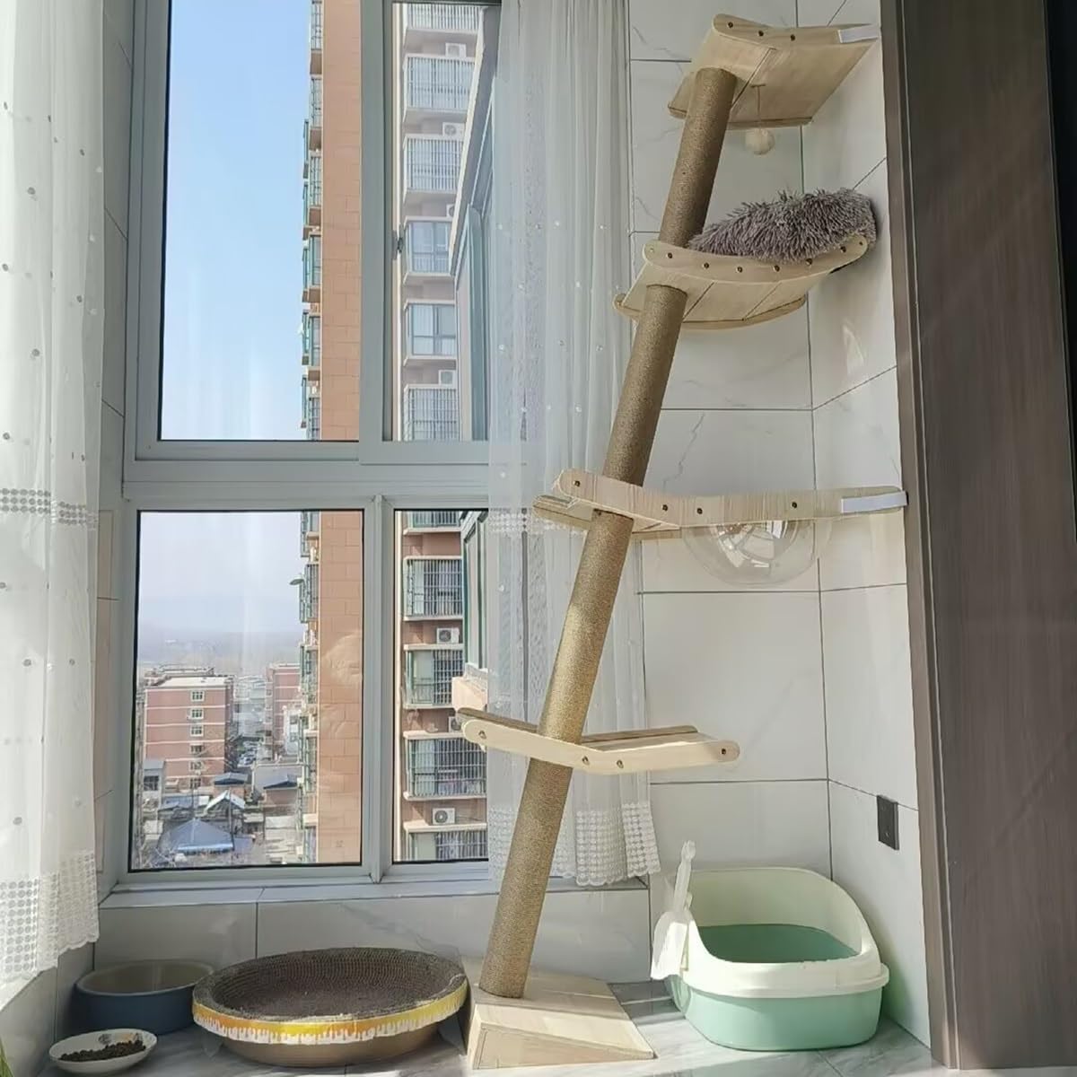 Leaning Wall Sisal Cat Tree Tower 70° Angle Wall/Glass Climber Cat Wall Furniture Lean Against Wall Cats Climbing Tower Cat Climbing Pole for Window