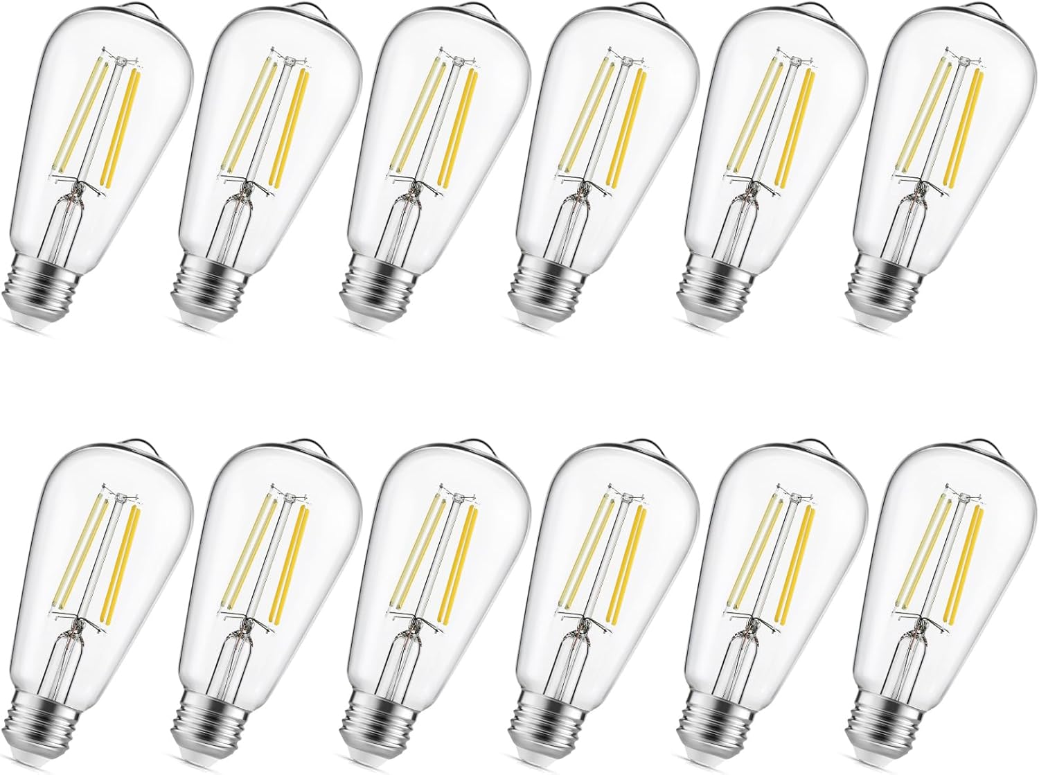 LED Edison Light Bulbs, 12Pcs Vintage 6 Watt, Equivalent 60W Incandescent Light Bulbs, E26 Medium Base Dimmable Decorative Antique Filament Light Bulbs with 90 CRI, Cool White 4000K