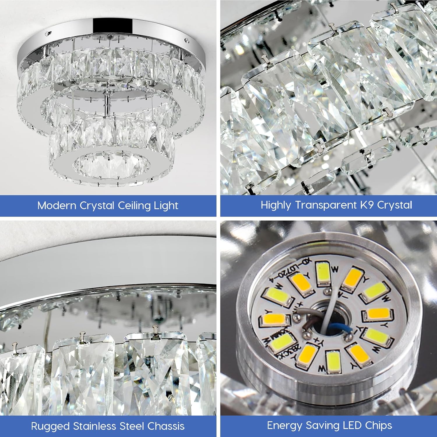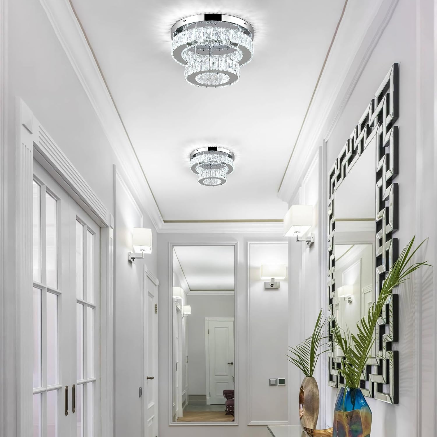 LEONTYNE 11.8 Inch Modern Mini Crystal Chandelier LED Flush Mount Ceiling Light - 2 Layer K9 Crystal, Small Chandelier for Bedroom, Hallway, Kitchen, Bathroom, Closet, Dining Room (Cool White)