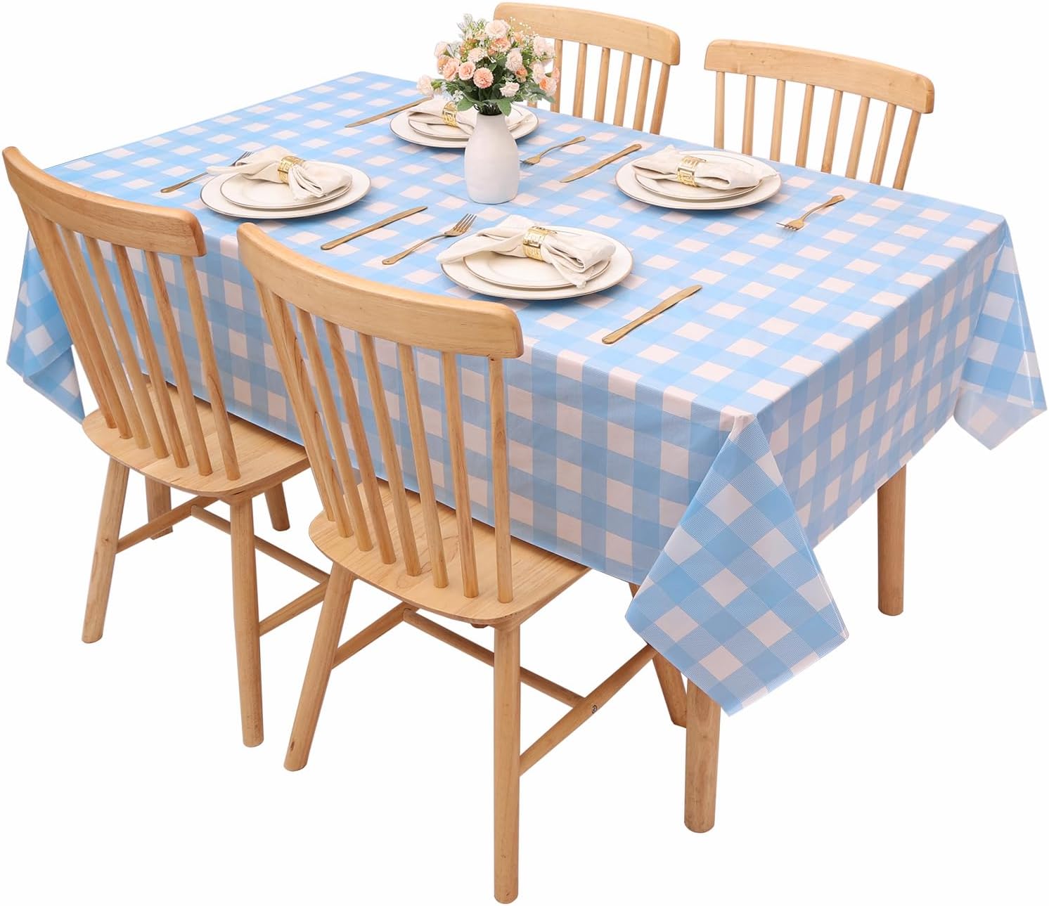 Light Blue Gingham Tablecloth Pale Blue and White Checkered Tablecloths 54 x 108 Inches Disposable Plastic Gingham Tablecovers Waterproof Rectangle Picnic Table Cover for Birthday Party