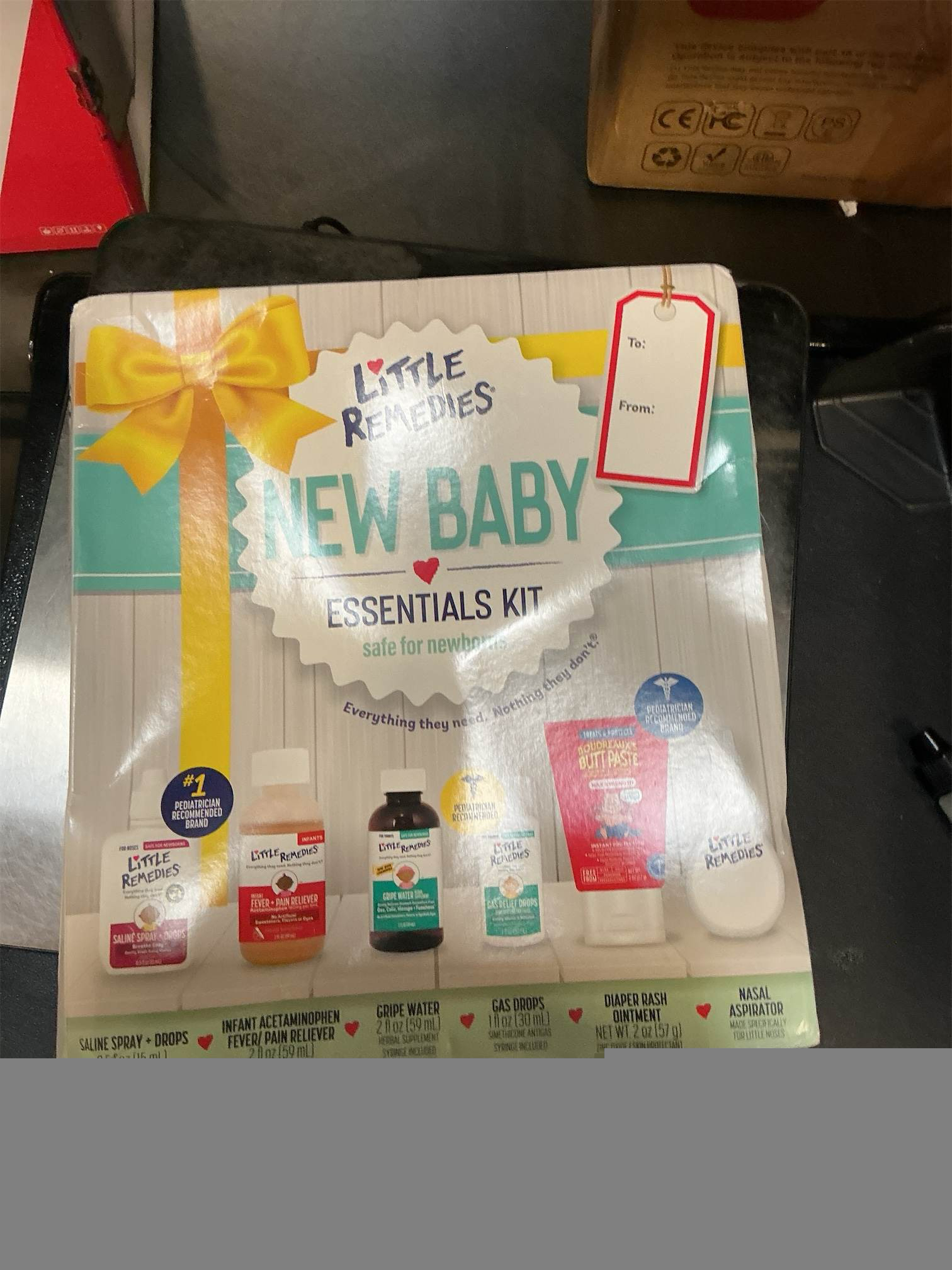 Little Remedies New Baby Essentials Kit with Saline Nasal Spray, Diaper Rash Cream, Gas Relief Drops, Gripe Water & More, Safe for Newborns