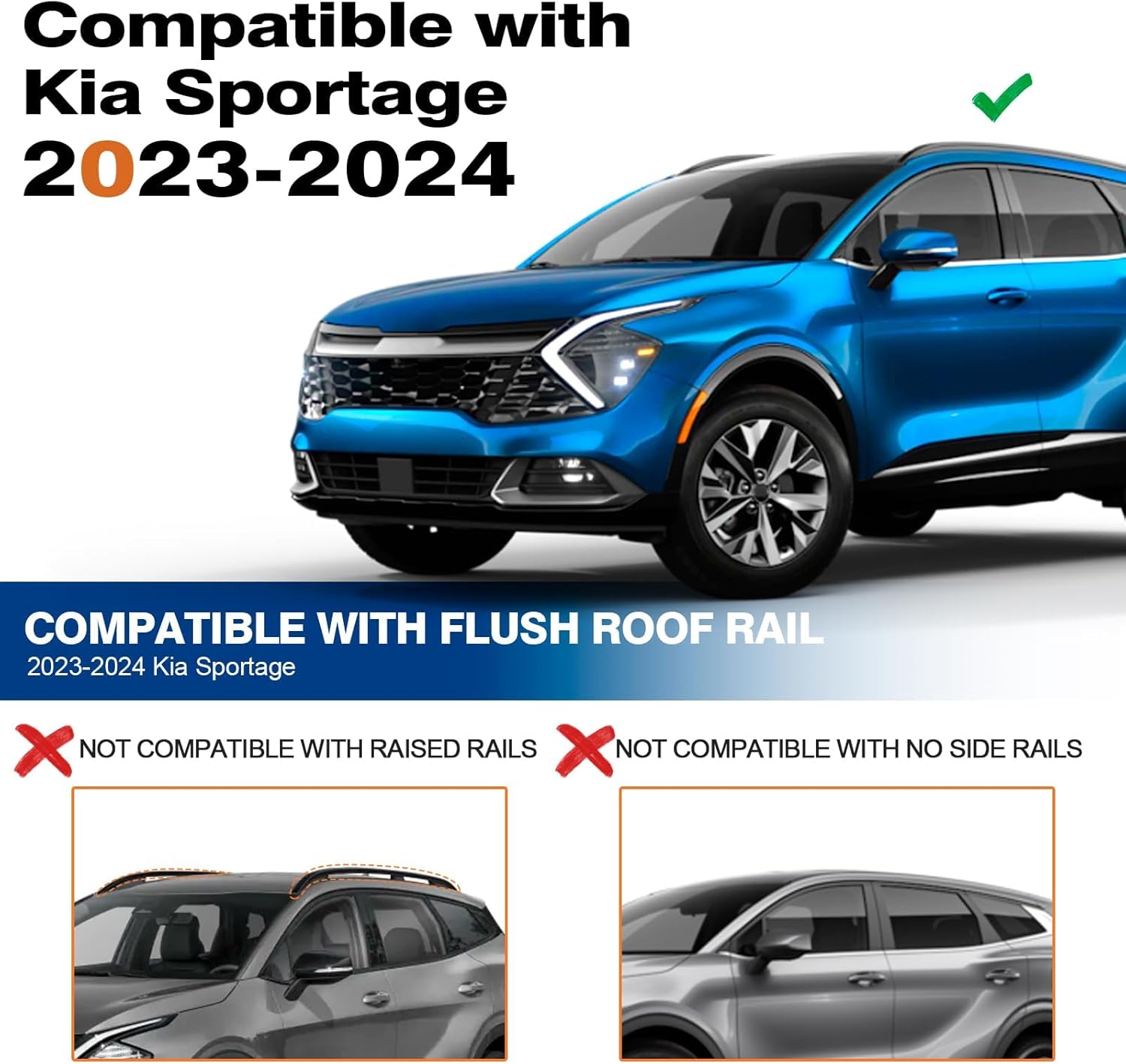 【Compatibility】Compatible with Kia Sportage KIA Sportage SX/EX & SX/EX Prestige 2023 2024 2025 2026 (for flush side rails). (Note: Not Compatible with Kia Sportage 2016-2022). This roof rack cross bars is designed specifically for your vehicle, better than the universal ones.