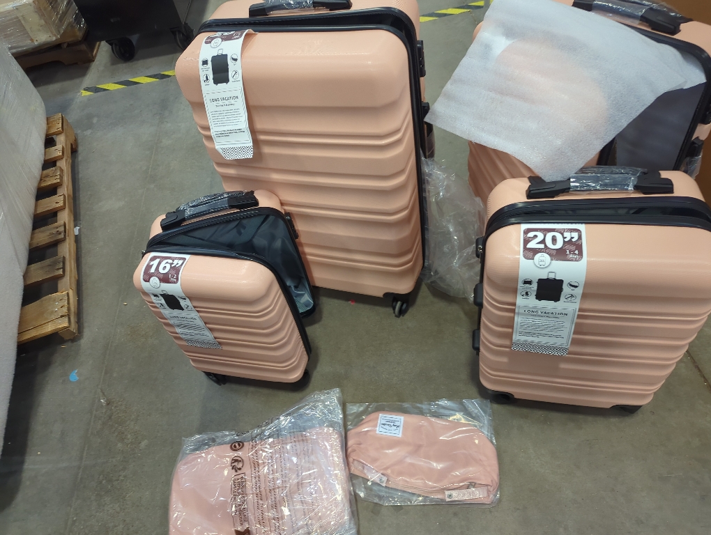 LONG VACATION 6 Piece Luggage Set Carry on Suitcase with ABS PC hardshell, Spinner Wheels & YKK Zipper TSA Lock (PINK, 6 piece set)