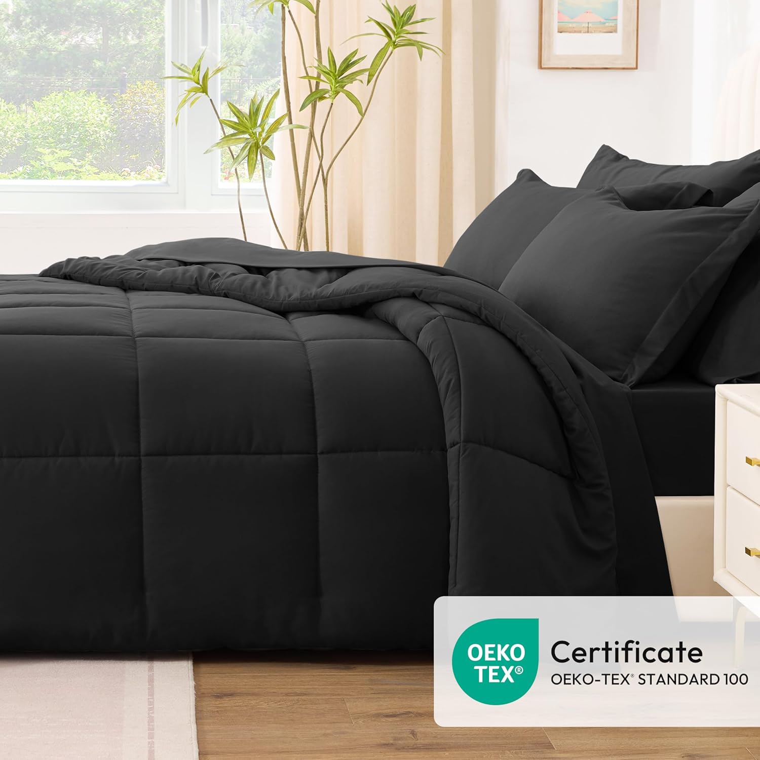 Love's cabin Full Comforter Set Ash Black, 5 Pieces Full Bed in a Bag, All Season Bedding Sets with 1 Comforter, 1 Flat Sheet, 1 Fitted Sheet, 2 Pillowcase