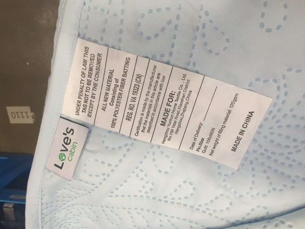 Top Fabric: 100% polyester, Back: 100% Polyester, Fill: 100% Polyester