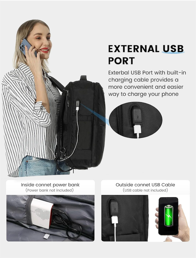 【USB CHARGING PORT】: Built-in USB port offers an easy way to charge your devices by the connected power bank which is placed in a dedicated power bank pocket. No need to keep the power bank on hand while walking (POWER BANK IS NOT INCLUDED). This carry on bag for women free your hands and don't worry about phone power running out when enjoying your phone.