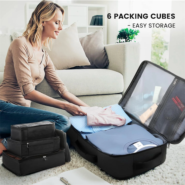 LOVEVOOK 40L Travel Backpack With 3 Packing Cubes Expandable Large Laptop Backpack Women Waterproof Backpack Waterproof Daypack Travel Bag TSA Fit 17inch Laptop Luggage With USB Charging Port