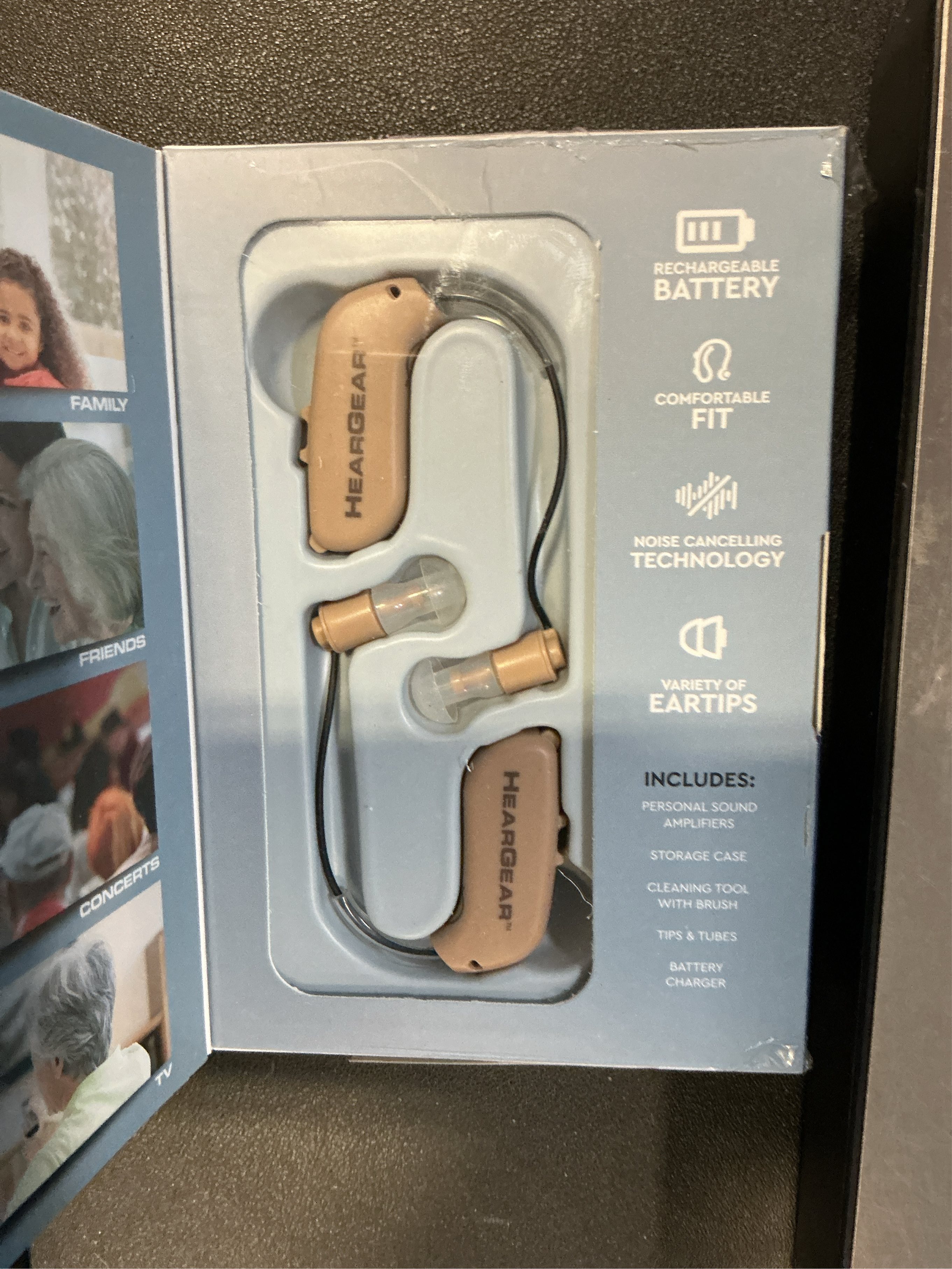 PERSONAL SOUND AMPLIFIERS - HearGear Personal Hearing Amplifiers enhance hearing. As a great back-up for regular hearing aids, they are perfect for adding a boost of sound in challenging environments like sporting events, parties & restaurants. Includes one pair of amplifiers, a storage case, three pairs of comfortable ear tips, a battery charger, and a cleaning tool with brush.