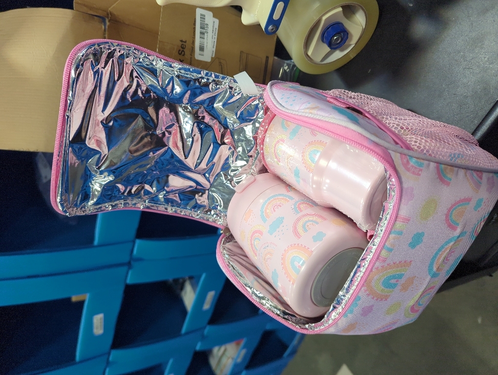 Lunch Box Set with Bento Box Container, 17OZ Stainless Steel Food Soup Thermo, Kids Water Bottle & Portable Insulated Lunch Bag – Leakproof, Hot/Cold Retention for School, Travel(Pink-Rainbow)